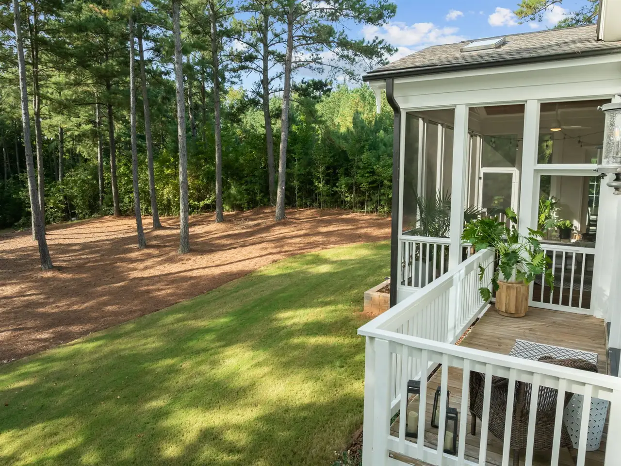 Southern charm meets modern luxury in this stunning home on a spacious 1.29-acre lot! From the moment you enter, you'll appreciate the hardwood floors throughout (Tile in baths) and custom finishes. The open-concept family room flows seamlessly into a gourmet kitchen featuring a large center island, quartz countertops, an impressive walk-in pantry, and a gas range-perfect for everyday living and entertaining. 1st floor office (can easily be used as guest suite) has walk-in closet and private full Bath. Enjoy the tranquil screened porch overlooking the expansive backyard with brand new patio. The main-level primary bedroom is a true retreat with vaulted ceilings accented by wood beams, private balcony, a spa-like bathroom with a walk-in shower, soaking tub, dual vanities, and a spacious walk-in closet with a convenient stackable washer/dryer hookup. Upstairs offers 3 additional bedrooms, 2 full baths (ensuite and jack and jill), a generous bonus room, gym, second laundry area, and two walk-in attic spaces for ample storage. The oversized 3 car garage completes the package. Located approximately one mile to Falls Lake and minutes to restaurants, shops-this home offers both convenience and serenity!