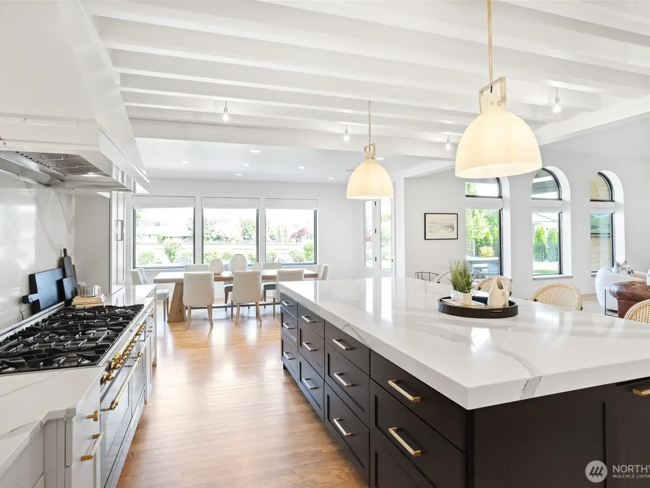 • Expansive vaulted ceilings with beam details