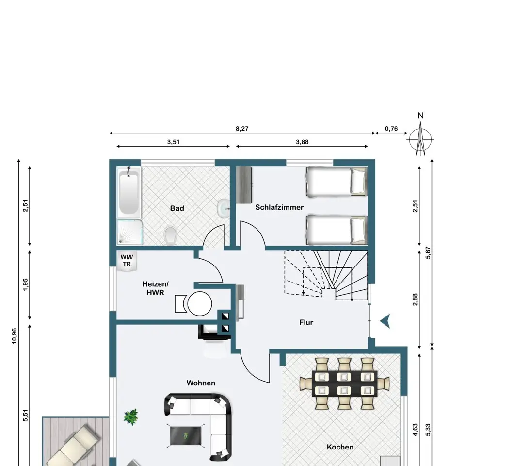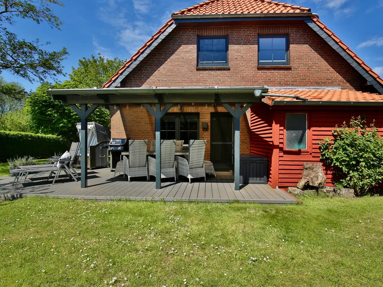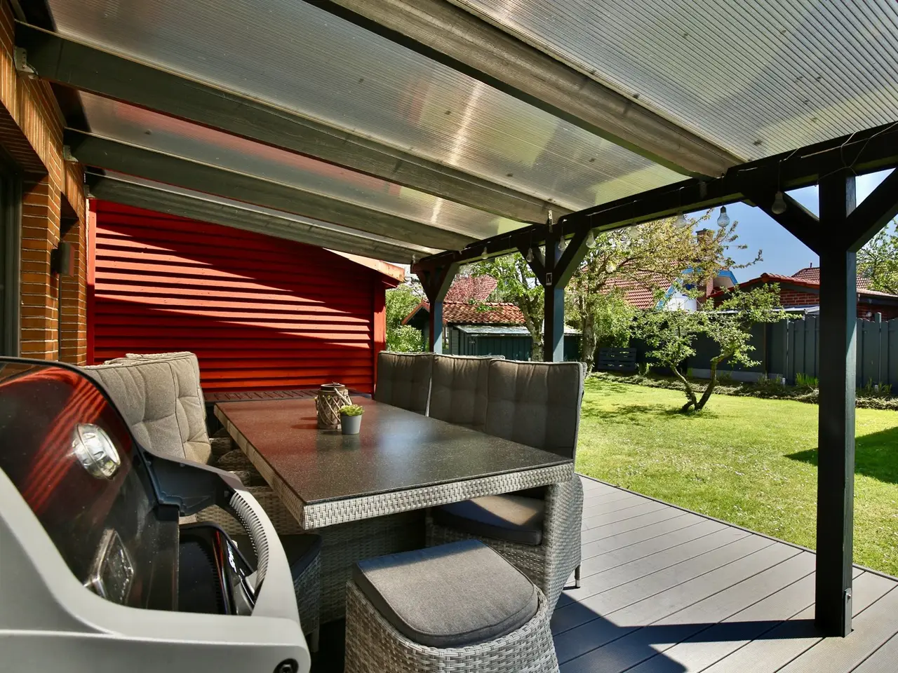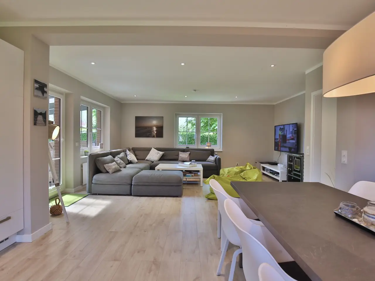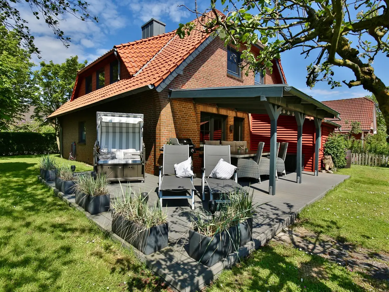 Are you dreaming of your new main or second home on the island of Wangerooge? Then "8er Huus Wangarou" is the right place for you. The "8er Huus Wangarou" was built to a high standard in clinker brick construction and extensively modernized in summer 2020 and converted into a top-class domicile with 4 bedrooms, a large living-dining area and 2 full bathrooms. With approx. 130 sqm of usable living space on 2 levels and 635 sqm of freehold land, this detached and fully fenced family home offers plenty of space and freedom for the whole family with children and dog. This detached house is being sold with the entire inventory and complete furnishings, allowing future owners an uncomplicated and quick transition. Step inside and look forward to sophisticated living with comfort and modern furnishings. On the first floor is the open-plan living and dining area, which has been lovingly prepared for you. A large dining table for 8 people is available for you to dine with the whole family or all your friends in a cozy atmosphere. The high-quality new fitted kitchen with all electrical appliances is fully equipped to a high standard. A large and cozy corner couch in the living area invites you to spend evenings together. Young and old can lounge in additional large Fatboy beanbags. The living area also provides access to the south-facing, furnished 35 m² terrace, which is mostly covered and has its own wicker beach chair and sun loungers. A Weber gas barbecue leaves little to be desired. A spacious bathroom with bathtub and one of the four bedrooms are also located on the first floor. The second floor has three bedrooms, the completely renovated and spacious master bathroom with shower and a separate toilet. The large bathroom offers a first view of the dyke. The master bedroom is furnished with a double bed (180 x 200 cm), a baby crib and a 55-inch TV. All other bedrooms have two single beds (90 x 200 cm), which can of course also be pushed together. Sufficient storage space is provided in every room. The insulated and accessible loft has sufficient headroom and could possibly be converted into an additional usable area with a view over the dyke to the sea. Your dream home gives you the space you need to make your dreams come true. Everyone will find their favorite spot here!