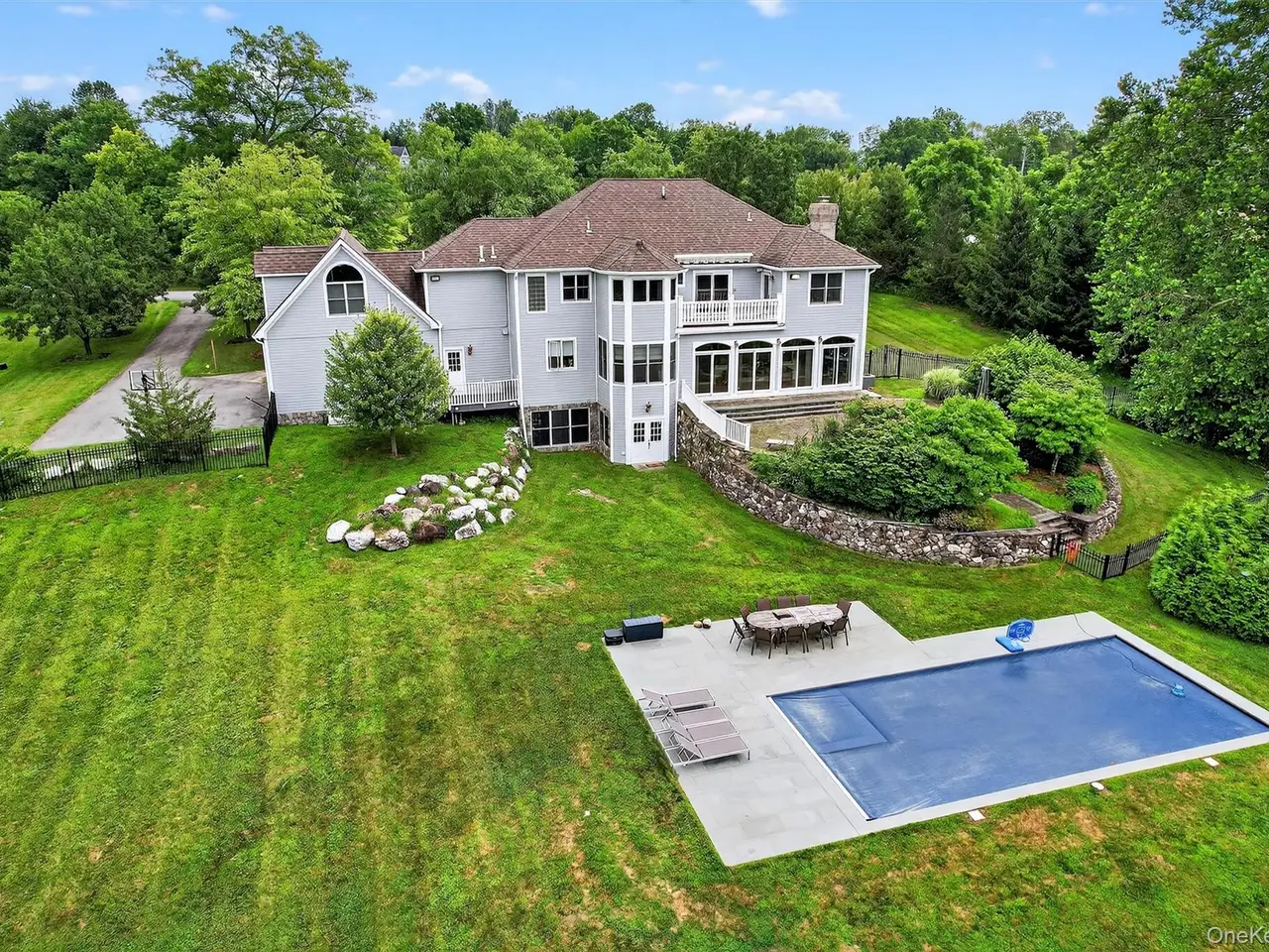 Discover this stunningly appointed 5-bedroom, 5.5-bath home nestled on 4.1 acres in beautiful Warwick, New York. This elegant and turnkey residence is perfect for both comfortable living and entertaining guests. Enjoy the luxurious in-ground pool, expansive living areas, and a beautifully serene yard. The lower level features gaming area, a custom bar, and a luxurious bathroom, creating an ideal space for relaxation and entertainment. The primary suite offers ultimate comfort and privacy. Whether hosting gatherings or savoring quiet evenings at home, this property offers the perfect blend of luxury and convenience. If you re seeking a private retreat or a stylish escape, this incredible home is ready for you!