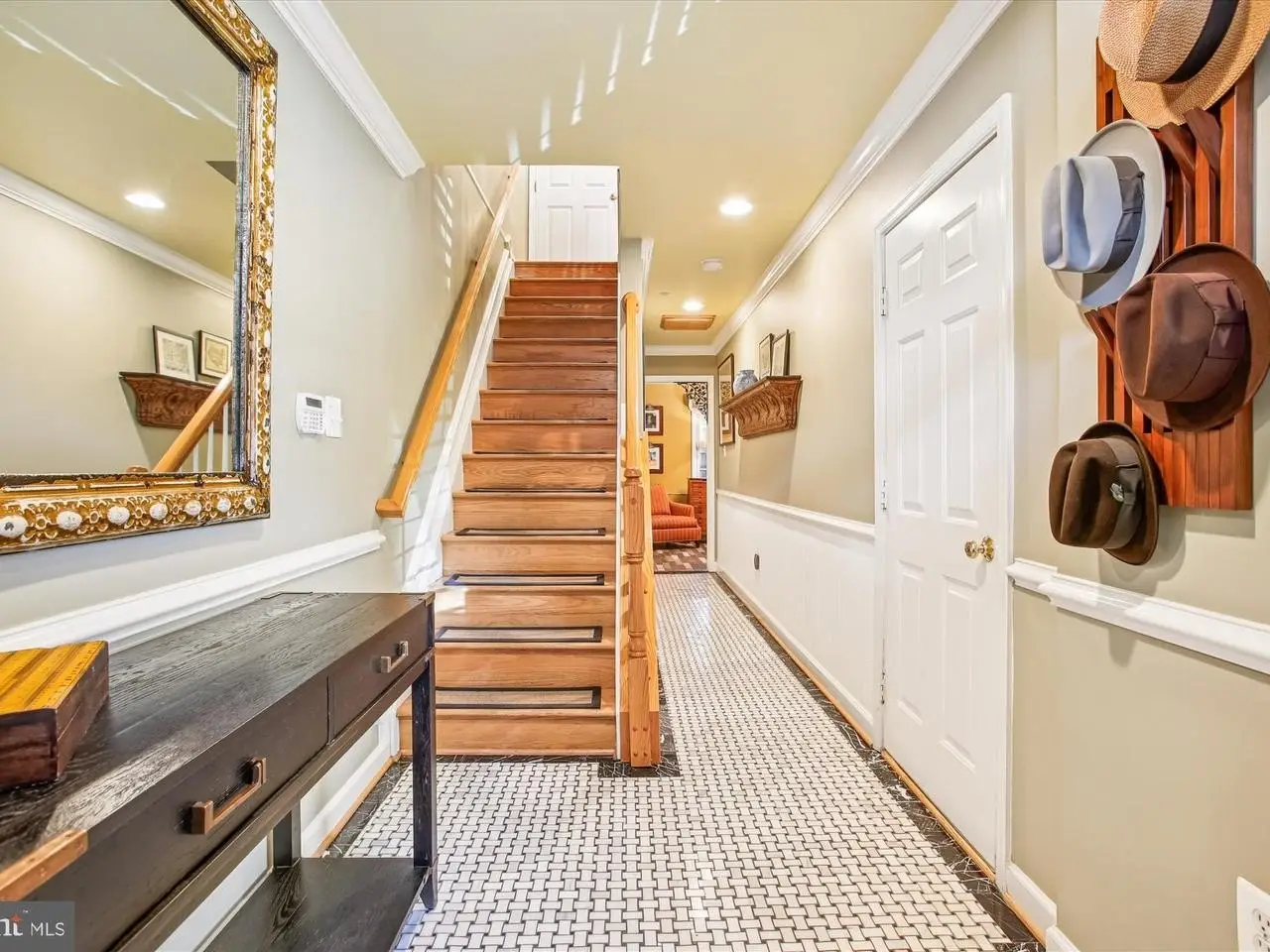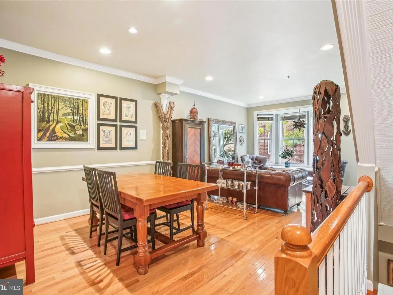 Welcome to 703 Capitol Square Place SW, a beautifully maintained 4-bedroom, 3.5-bathroom townhome with two-car parking, perfectly situated next to DC's most vibrant waterfront destination, The Wharf. This exceptional residence combines luxury, convenience, and modern city living at its finest. Every element has been thoughtfully elevated-no builder-grade selections here. Breathtaking design details abound throughout, including stately moldings, elegant ceiling accents, striking painted anaglypta wallpaper, upgraded registers, solid oak stair treads, and solid oak hardwood flooring. The Marvin Infinity fiberglass double-hung replacement windows fill all four levels with spectacular natural light. The entry level features an inviting foyer with marble basketweave floor tile, a bedroom or office with wood-look porcelain tile flooring and access to the fenced backyard with a brick herringbone patio. This level also includes a coat closet and entry to the attached garage. Upstairs, the main level showcases a gracious living room with a gas fireplace option (gas line is currently capped) crown and chair rail molding, and a charming bay window with a sitting ledge. The living room flows into the dining area, creating an ideal layout for entertaining. The stunning chef's kitchen includes high-end stainless-steel appliances such as a JennAir professional-style gas range and a Samsung BESPOKE refrigerator with custom panels and beverage center. Finishes include granite countertops, a center island, a diamond-patterned stone backsplash, and a pantry. The eat-in-kitchen features a bright breakfast nook with access to a large deck with TimberTech/AZEK flooring featuring a built-in gas line-perfect for grilling and outdoor gatherings. This level also includes a powder room. On the third level, there are two spacious bedrooms and two beautifully appointed bathrooms, including a generous primary suite. The primary bedroom offers soaring ceilings, a bay window, a 12 foot-long walk-in closet with an Elfa organizing system, and a modern ceiling fan. The luxurious private bathroom features heated marble flooring, four foot high marble wall tiling, a soaking tub with an inline heater to maintain water temperature at 105°F, and a glass-enclosed two-person steam shower with bench seating, handheld sprayer, jet sprays, rain and wall showerheads, plus a double vanity. The second bedroom includes an attached bathroom with dual access to the hallway. A gas tankless water heater provides unlimited hot water for the entire home. The top floor offers a versatile lounge or fourth bedroom with vaulted ceilings, a dormer, chair rail molding, a storage closet, and an attached full bathroom with a marble vanity and a corner shower. This level also includes a laundry closet for added convenience. This home offers multiple outdoor spaces, including a deck off the kitchen and a private patio below with a seven-foot privacy fence. Parking includes an attached garage and an additional tandem space in the driveway. Just steps from renowned dining, live entertainment, and cultural attractions, this location offers the ultimate DC experience. Enjoy award-winning restaurants, the Anthem concert hall, the Potomac water taxi, the Southwest Fish Market, and the scenic waterfront promenades of The Wharf-a short walk from the front door. Near Arena Stage (six blocks), the National Mall (six blocks) and only three blocks from Metro (orange, blue, silver, green, and yellow lines). Downtown DC, Union Station, and the U.S. Capitol are 1.5 miles away. National Airport is 2.5 miles away. A Whole Foods Market is a short mile-long drive. Improvements: Replaced Roof (2018), Replaced Rain Gutters (2023), Front and Rear Doors Replaced with Fiberglass Doors (2015), Fiberglass replacement windows (2014), and New Garage Door Opener with Integrated Smart Phone Access (2025), replaced both HVAC units (2024). Security system with glass breaking sensors on 2 levels.