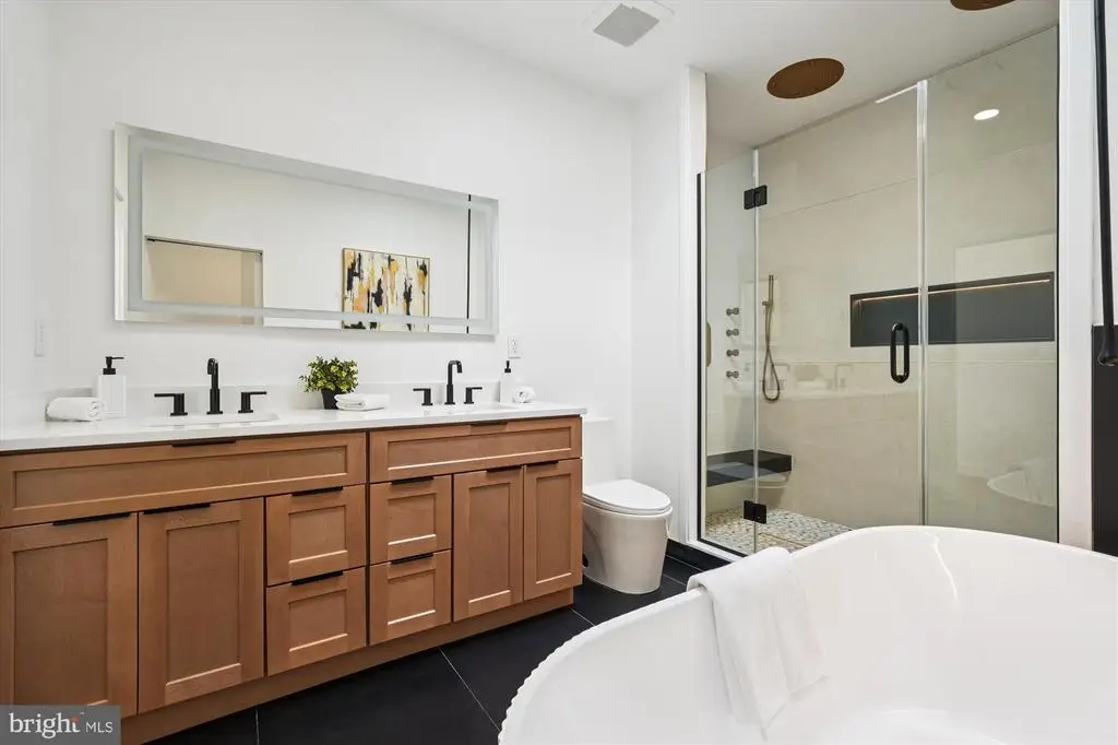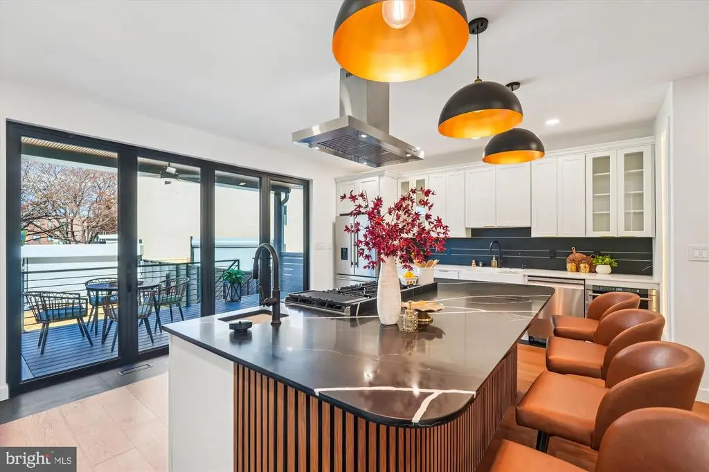 Presenting an exceptional opportunity for luxurious urban living in the heart of Washington D.C.'s vibrant Columbia Heights neighborhood. This newly renovated, light-filled 3-level townhome offers the epitome of modern design and functional sophistication, boasting a spacious layout perfect for both grand entertaining and everyday comfort. The property features a total of five bedrooms, five full bathrooms, and two half bathrooms. The main level is an entertainer's dream, defined by soaring 9-foot ceilings and an open-concept flow. At its center, a custom-designed chef's kitchen awaits, complete with an oversized waterfall island offering seating for six, premium state-of-the-art appliances, sleek cabinetry, and designer finishes. Adjacent to the kitchen, the spacious living area is a bright sanctuary, featuring expansive, state-of-the-art windows and doors, complemented by contemporary lighting fixtures throughout. The upper level serves as a private retreat: Primary Suite: Features dramatic 12-foot ceilings, an expansive walk-in closet, a spa-inspired bathroom with an oversized custom shower, and large windows that fill the space with light. Additional Bedrooms: Two additional bedrooms each offer direct access to a private outdoor deck. The highly versatile lower level is designed for maximum functionality, featuring 8-foot ceilings, sound insulation between floors, and a fire rating for use as a separate dwelling unit. It includes: Two bedrooms, each with its own full, ensuite bathroom. Direct access from both the front and rear of the home. Hookups for an electric range, microwave, and dishwasher, plus an additional washer and dryer connection. Convenience is paramount, with all three levels benefiting from individual climate controls for personalized comfort. This meticulously redesigned townhome offers a rare blend of high-end amenities and flexible living spaces in one of D.C.'s most sought-after locations.