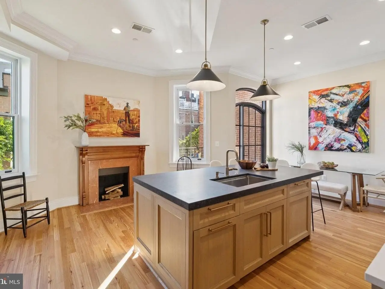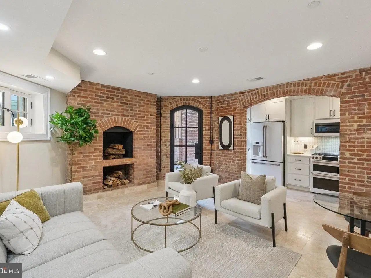 Impeccably restored and reimagined for modern luxury, this grand four-story residence offers approximately 5000 square feet of exceptional living space in the heart of Logan Circle. Seamlessly blending historic craftsmanship with state-of-the-art design, 1514 R Street NW stands as a rare example of timeless architecture renewed for contemporary life. Step inside to discover elegant details throughout, including restored original wood paneling, pocket doors, and reclaimed heart pine floors. The main level features gracious living and dining rooms-each with working fireplaces and marble hearths-and a designer kitchen by Jennifer Gilmer Kitchens with custom cabinetry, JennAir appliances, and French steel doors opening to a glass deck for seamless indoor-outdoor living. Six fireplaces, including a gas fireplace in the primary bathroom, add warmth and charm throughout. Upstairs, the private quarters showcase original mosaic tile flooring, Rohl Apothecary fixtures, and a Kingston Brass clawfoot tub. A convenient second-floor laundry and beautifully restored stairway railings complement the home's period elegance. The lower level offers a second full kitchen with GE cafe appliances, travertine flooring, and a second laundry area-perfect for guests, extended family, or rental income. Thoughtfully designed with exposed brick walls, arched brick doorways, and a light well that fills the space with natural light, the lower level combines warmth, character, and functionality. Outside, two secure parking spaces with an electric roll-up door and EV charger complete the offering. Every inch of the home has been rebuilt with all new HVAC, plumbing, electrical, and sprinkler, along with tankless water heaters and all new energy-efficient windows. With six French steel doors, restored original details, and modern craftsmanship at every turn, this residence perfectly balances historic character and 21st-century luxury. Located just steps from Logan Circle, 14th Street dining, and Dupont Circle, 1514 R Street NW delivers the ultimate in refined urban living.