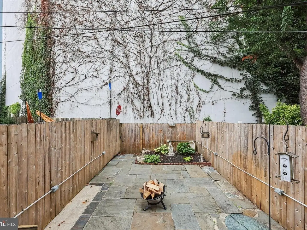 • Stone backyard patio with garden for privacy