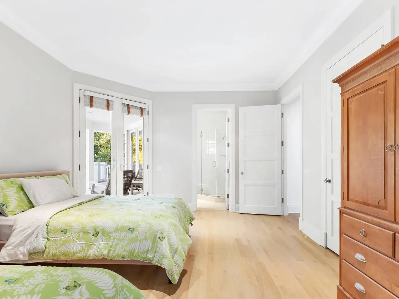 Serene screened porch with French doors