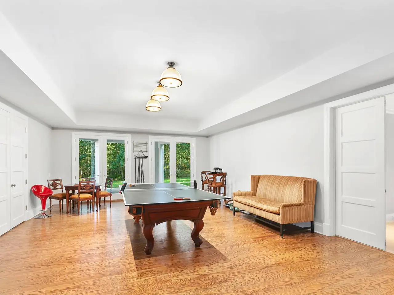 Finished lower level with game room and gym