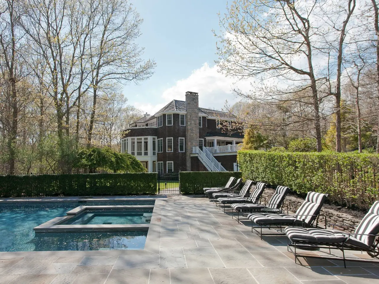 Rental Reg #:PENDING. A gated entry and long private driveway lead to this private and secure estate tucked away on 4.65+/- manicured acres. 7,400+/- sq. ft. of thoughtfully designed living space on three floors offer ample space for gathering both indoors and out. A double height grand entrance opens to a spacious living room with fireplace and dining room. French doors lead to screened porch that overlooks the serene setting. Top of the line chef's kitchen is flooded with light and features premium appliances and an over-sized island perfect for cooking and entertaining. Six bedroom suites include an upstairs master with fireplace and balcony and a first floor junior master. Finished lower level offers a game room, gym, 2 bedrooms, 3 baths and a multitude of French doors. A brand new heated Gunite pool, pool house and all weather tennis court, round out the experience of luxury and privacy on a grand scale. Listing ID: 844191