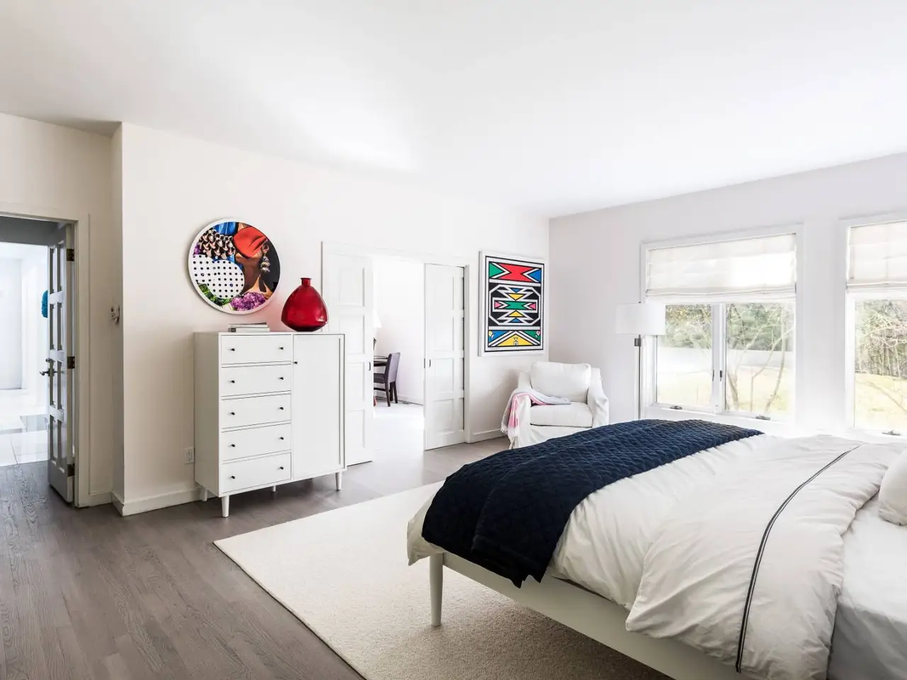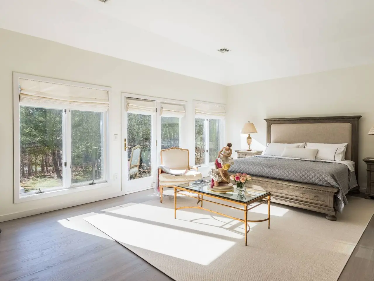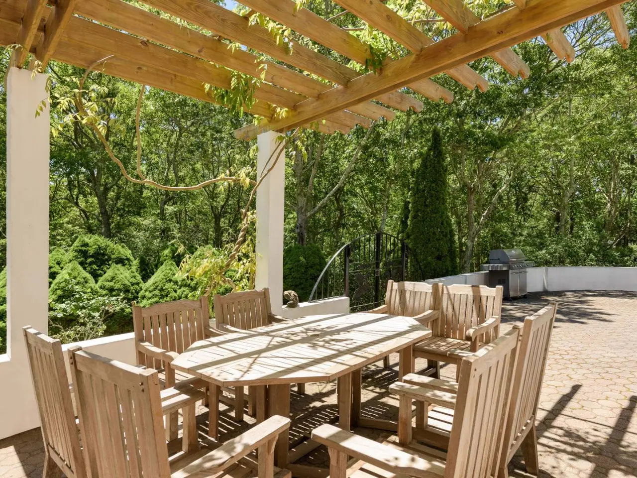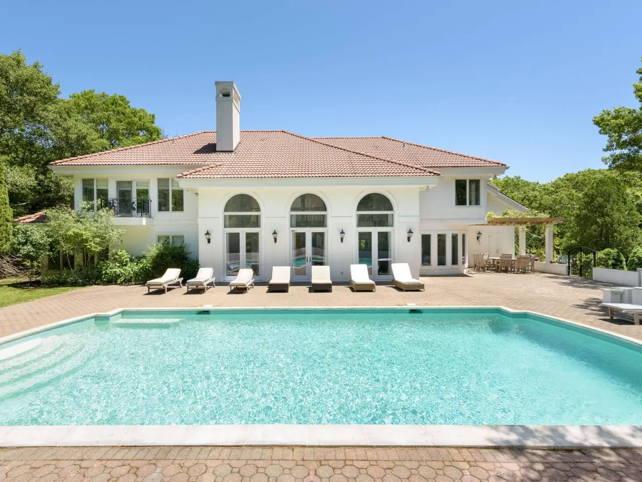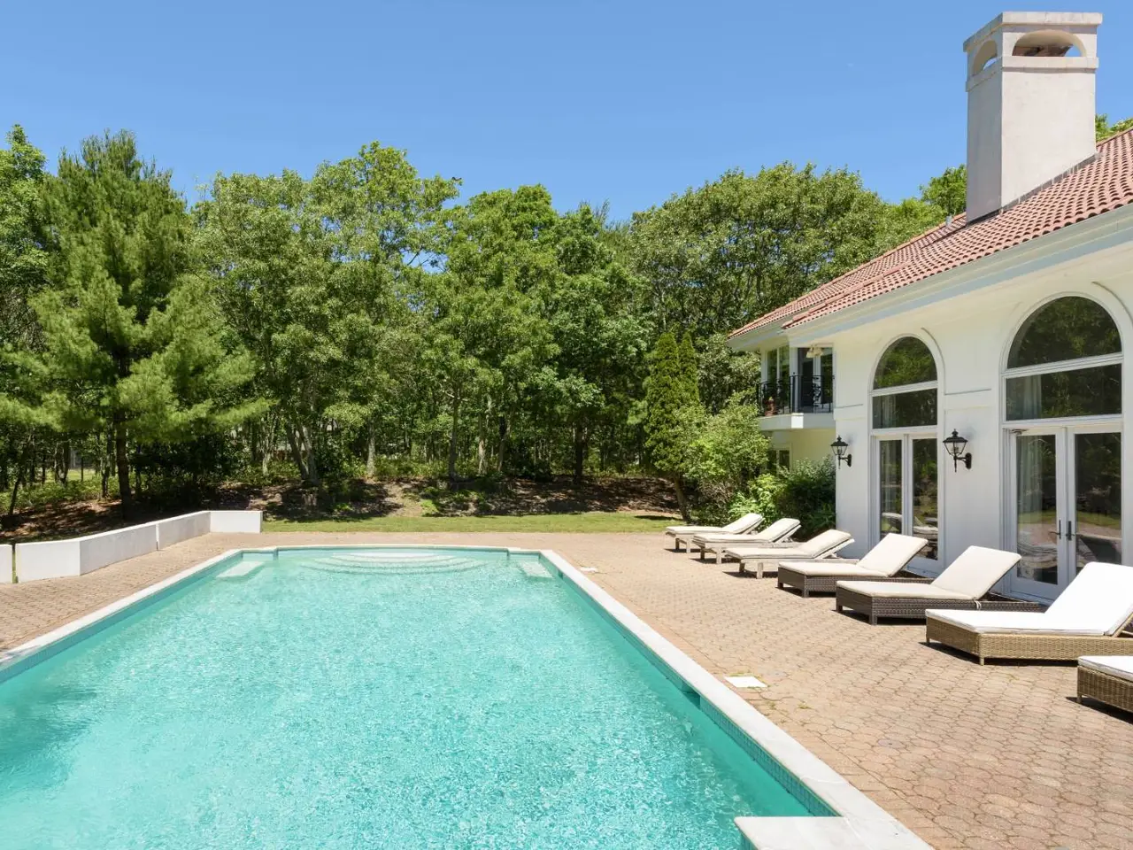 RR# RP220731. White stucco house with red-tile roof sits on 2.3 acres of beautifully landscaped grounds with heated gunite pool, outdoor gazebo dining area equipped with barbeque grill. House architecture has a contemporary feel for airy, high ceiling rooms with lots of white color and modern shapes. It has a fireplace, formal dining area, 5 bedrooms (Master Suite & Jr. Master), 6 fully renovated bathrooms, 3-zone air-conditioning, garage and additional parking space for guests. It is 10 min away from villages of Southampton, Water Mill or Bridgehampton, or any beach around. Home is furnished luxuriously, filled with contemporary art throughout the house. Listing ID: 738888