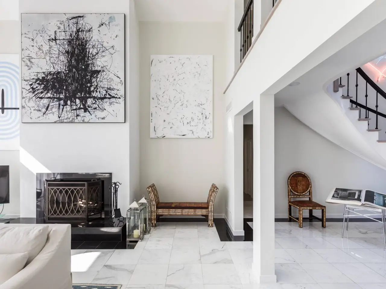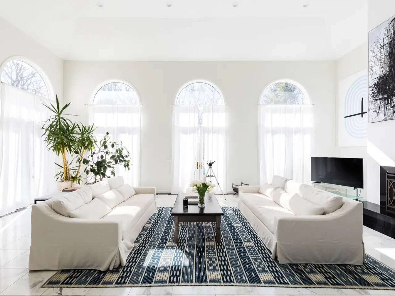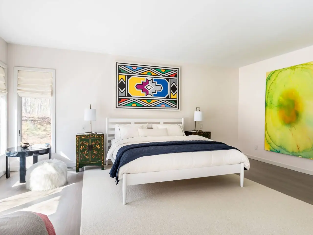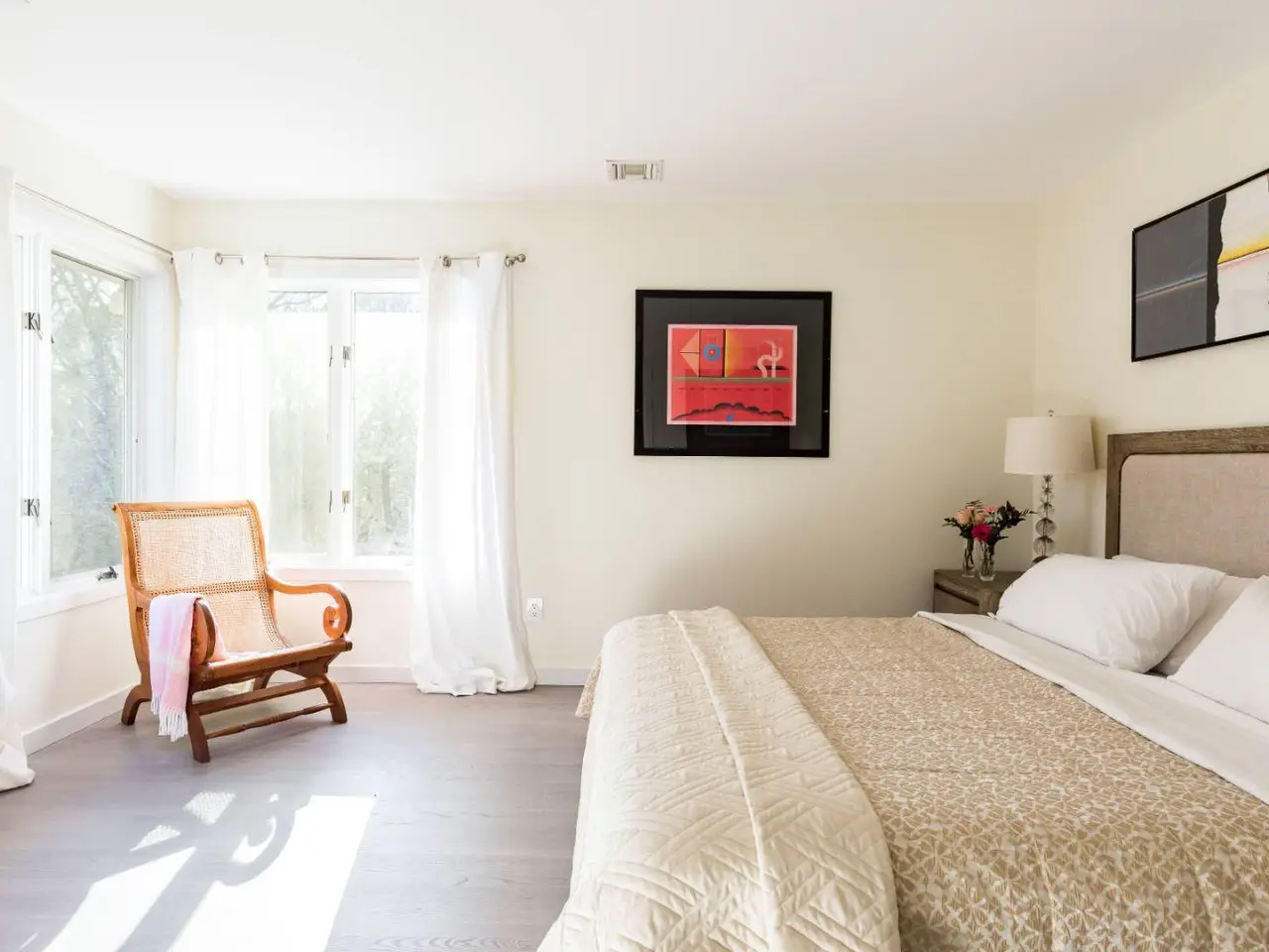 RR# RP220731. White stucco house with red-tile roof sits on 2.3 acres of beautifully landscaped grounds with heated gunite pool, outdoor gazebo dining area equipped with barbeque grill. House architecture has a contemporary feel for airy, high ceiling rooms with lots of white color and modern shapes. It has a fireplace, formal dining area, 5 bedrooms (Master Suite & Jr. Master), 6 fully renovated bathrooms, 3-zone air-conditioning, garage and additional parking space for guests. It is 10 min away from villages of Southampton, Water Mill or Bridgehampton, or any beach around. Home is furnished luxuriously, filled with contemporary art throughout the house. Listing ID: 738888