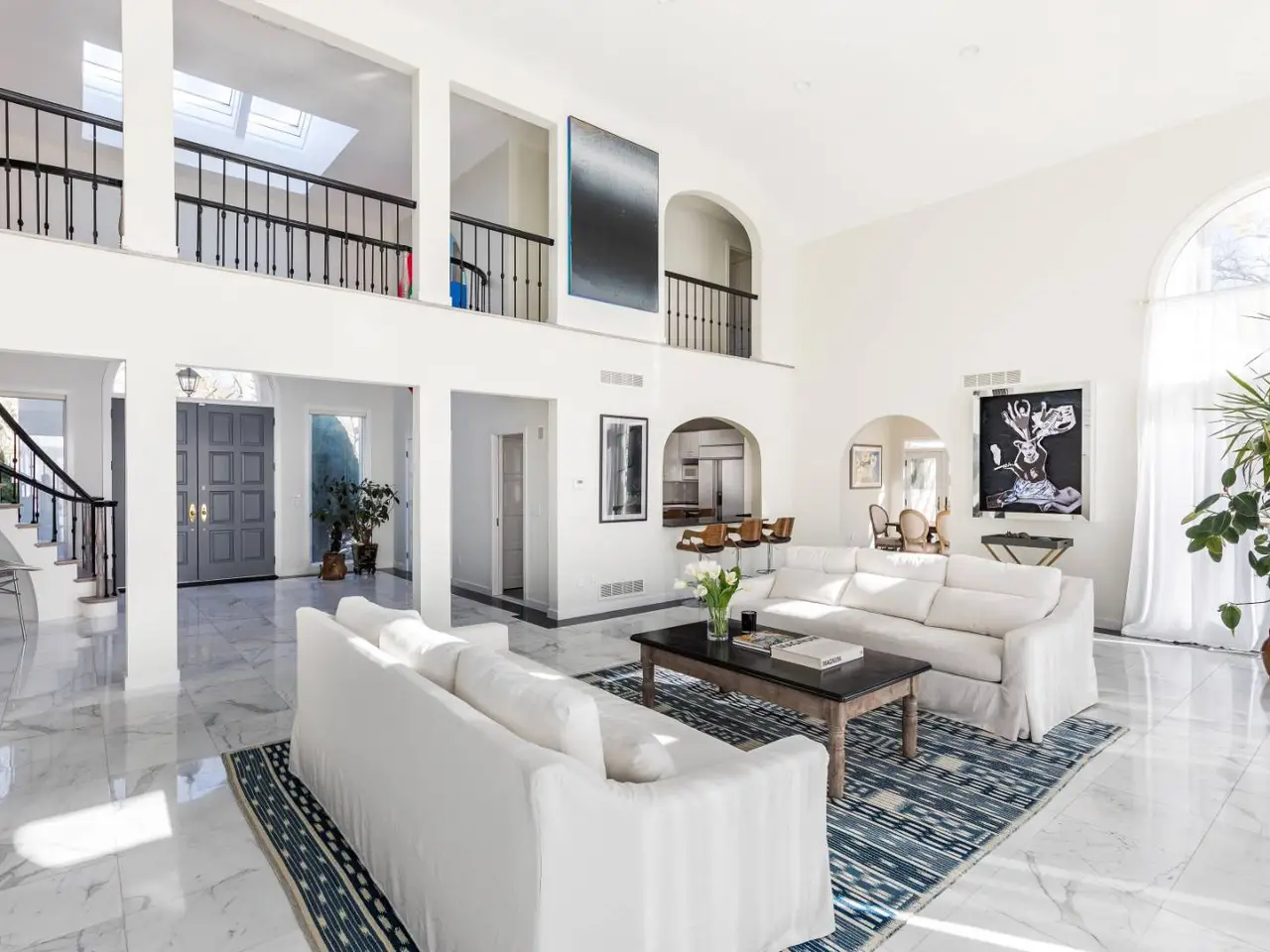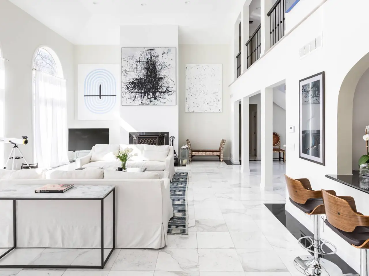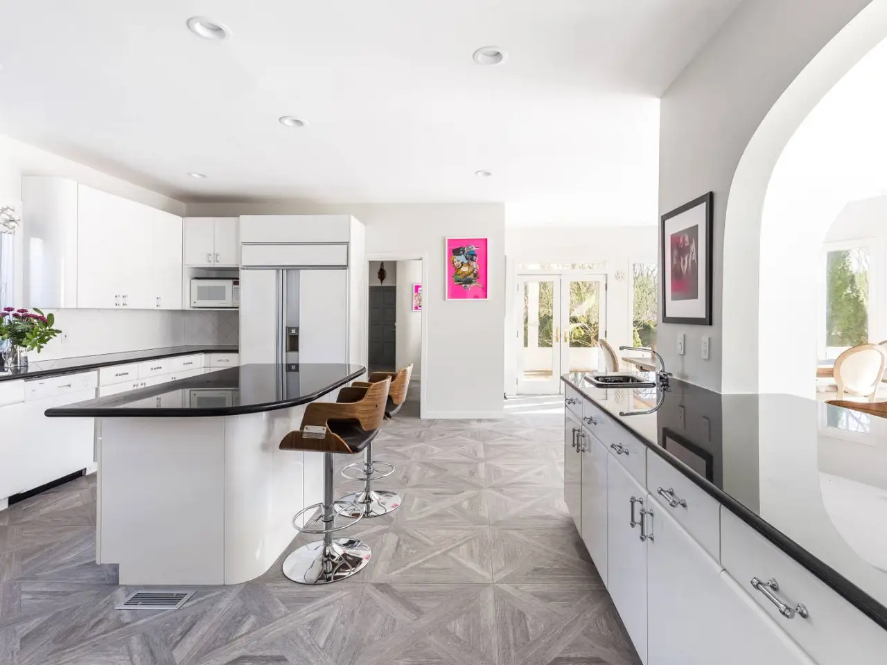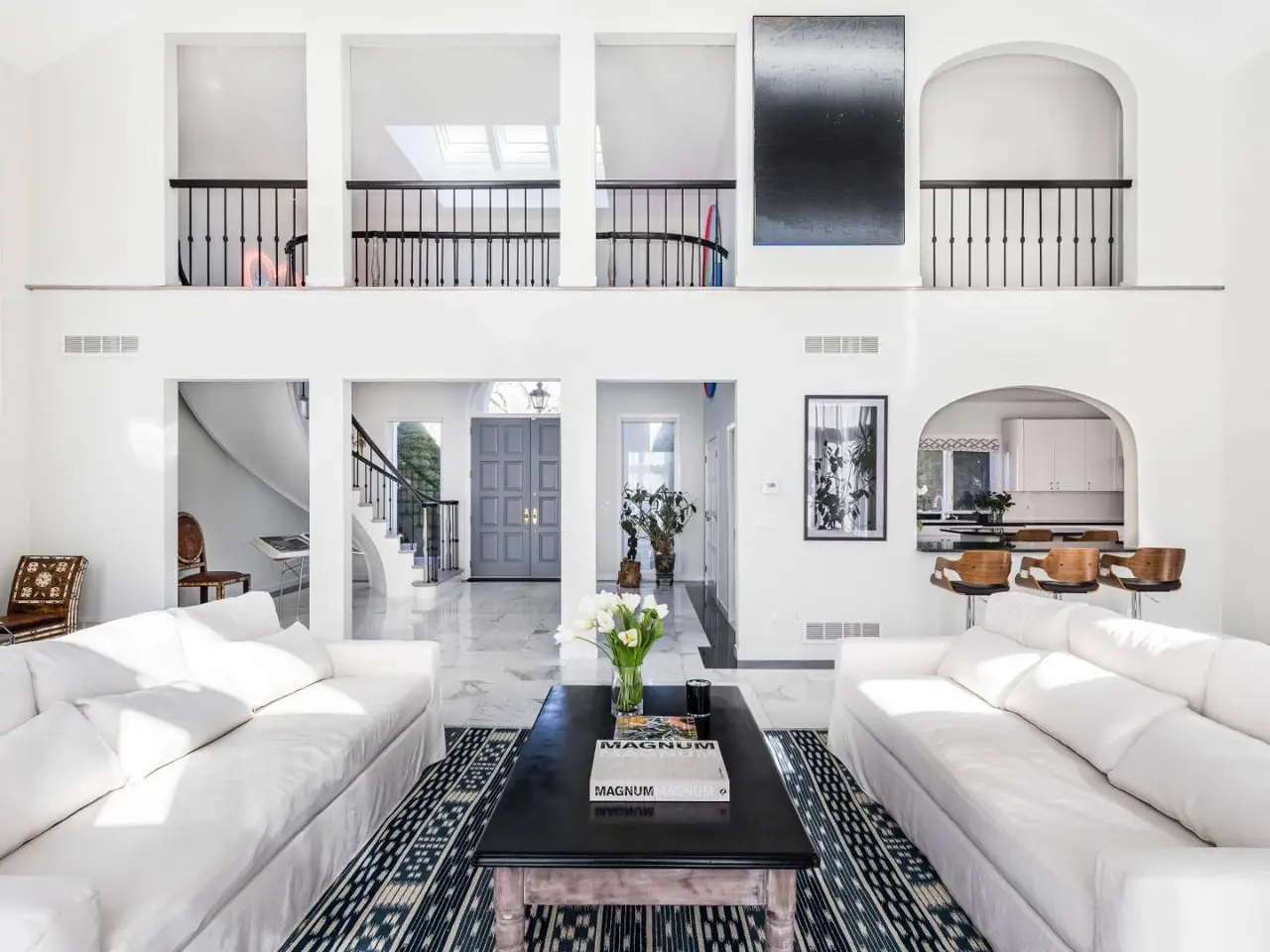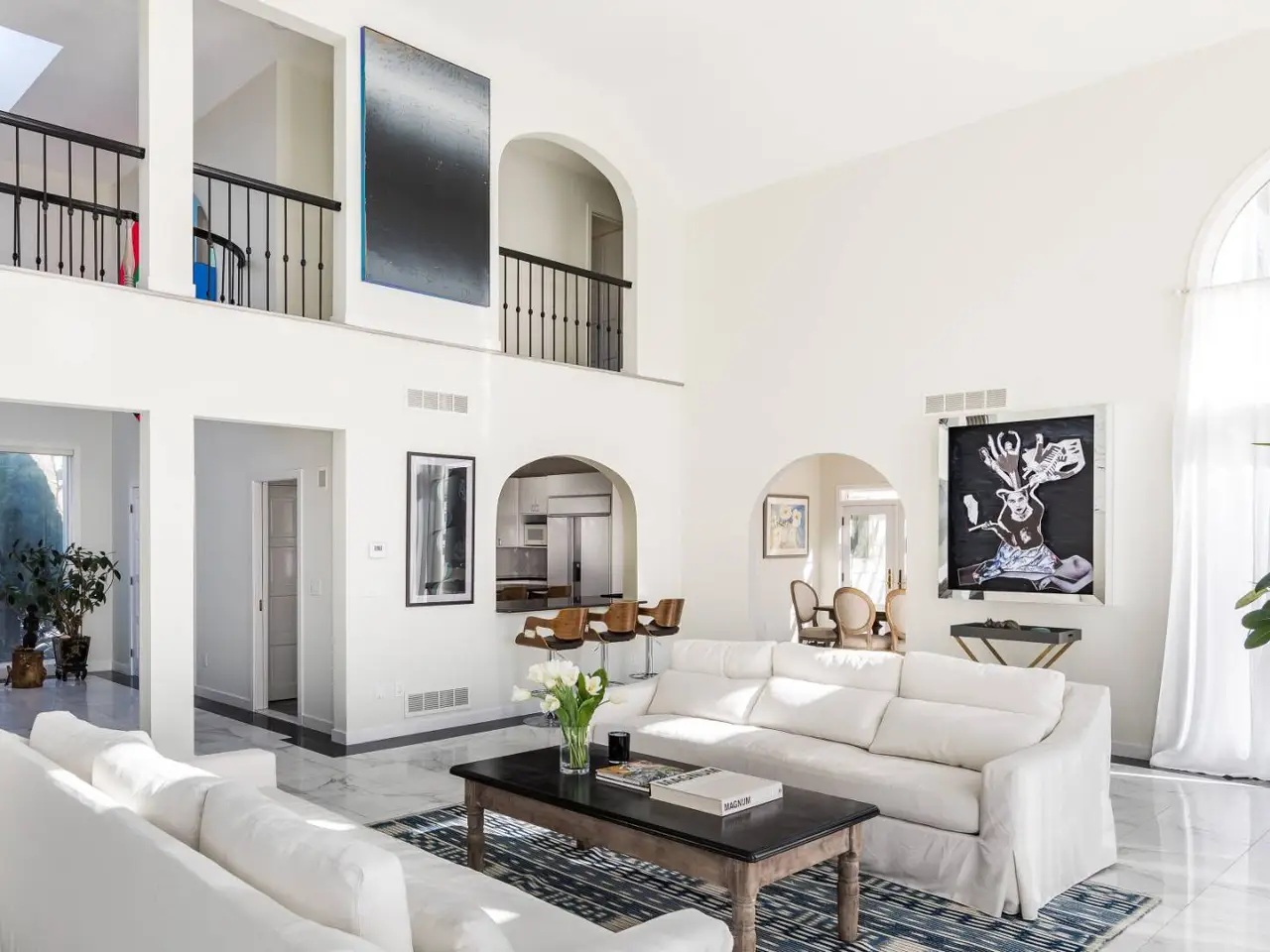 RR# RP220731. White stucco house with red-tile roof sits on 2.3 acres of beautifully landscaped grounds with heated gunite pool, outdoor gazebo dining area equipped with barbeque grill. House architecture has a contemporary feel for airy, high ceiling rooms with lots of white color and modern shapes. It has a fireplace, formal dining area, 5 bedrooms (Master Suite & Jr. Master), 6 fully renovated bathrooms, 3-zone air-conditioning, garage and additional parking space for guests. It is 10 min away from villages of Southampton, Water Mill or Bridgehampton, or any beach around. Home is furnished luxuriously, filled with contemporary art throughout the house. Listing ID: 738888