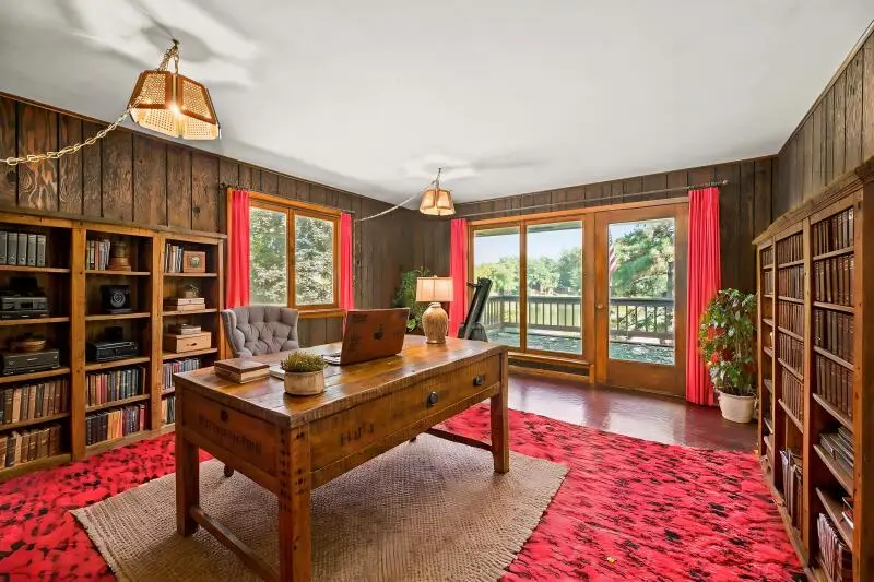 Now Available for the First Time! Discover this spacious five-bedroom home located on four lots along the Fox River, leading directly into Lake Tichigan, featuring over 200 feet of level water frontage. The stunning views are captivating from every direction. Upon entering, you are welcomed by a large tiled, slate foyer that leads to a generous great room, complete with vaulted ceilings and a striking "California Stone" fireplace that reaches the ceiling. The family room includes a cozy fireplace and connects to a three-season room for enjoying the beautiful waterfront. The kitchen, which boasts a brick pizza oven, includes a dining area with river views. The upper-level hosts five bedrooms, highlighted by a sizable primary suite with a connected bathroom, plenty of storage, its own fireplace surrounded by a wall of natural amethyst stone and a marble hearth along with access to a deck overlooking the water. A finished recreation space is perfect for entertaining. Enjoy outdoor living with decks, patios, and a covered patio for rainy days. In addition to the oversized 3-1/2 car garage, there's a sizable, dedicated workshop area.