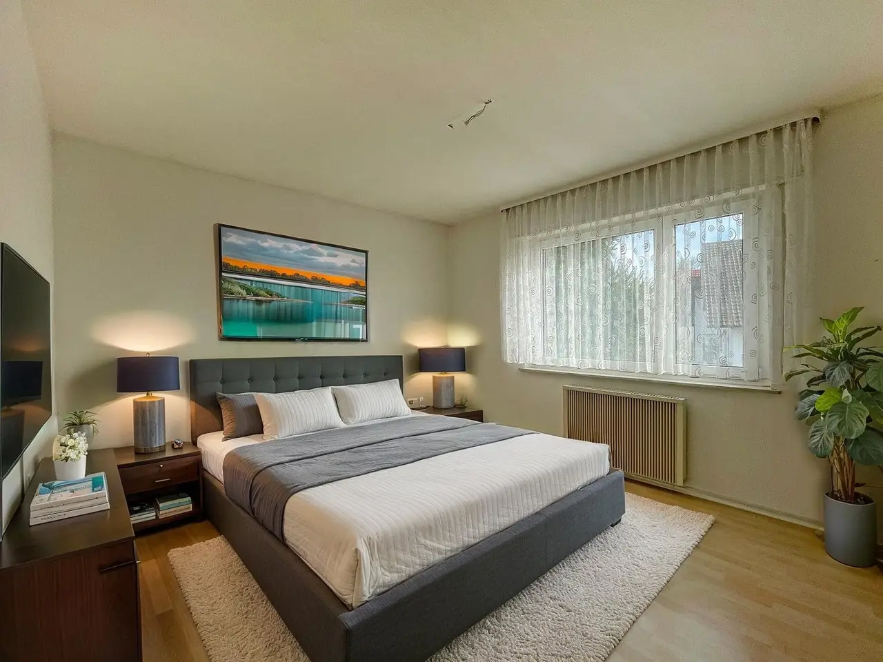 We are pleased to be able to present you this single-family home in need of renovation on a spacious corner plot of approximately 503 square meters. The property offers a living space of approximately 172 square meters and is in a sought-after location with a beautiful view of the Rhine plain. The house was built in 1955, but was partially modernized in 1993. The upper floor was renovated and new windows were installed in 2000. In 1972 the house was expanded and given a new roof. The quality of the furnishings of the house is simple, but it offers many design options for the new owner. The property is currently divided into two apartments, which is ideal for a multi-generational family or a combination of living and working. However, there is also the possibility of combining the house into a single unit again. The single-family home has a total of 6 rooms, including 4 bedrooms and 2 bathrooms. A balcony facing southwest and a terrace also facing southwest provide additional living comfort. This means you can enjoy the sun all day long. The house's other amenities include a beautiful garden that invites you to relax and linger. There is also a garage on the property and a parking space in the yard. The location of the house is very attractive as it is on a corner plot and therefore offers you more privacy and freedom of design. There is also the possibility of extending the house and thus creating even more living space. Overall, this property in need of renovation offers a lot of potential for individual design and renovation according to your own ideas. With its size and location, this house is ideal for families who would like to live spaciously and individually.
