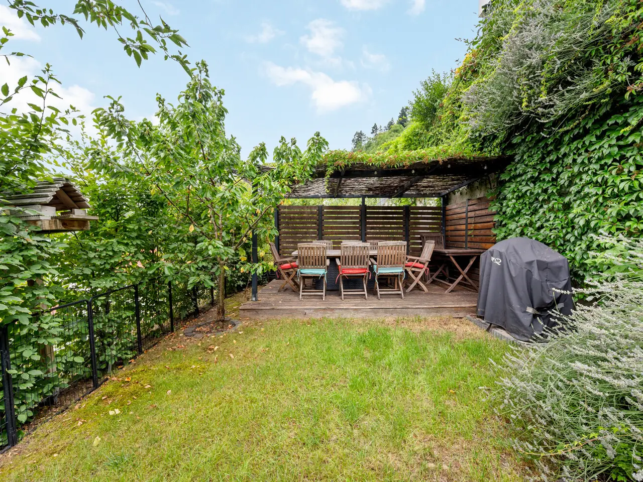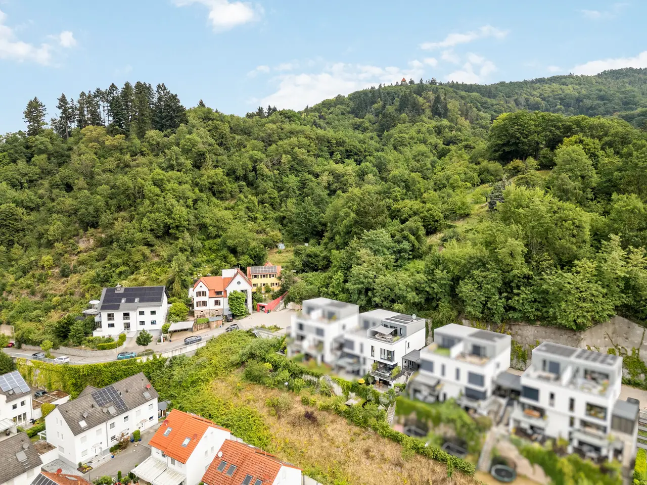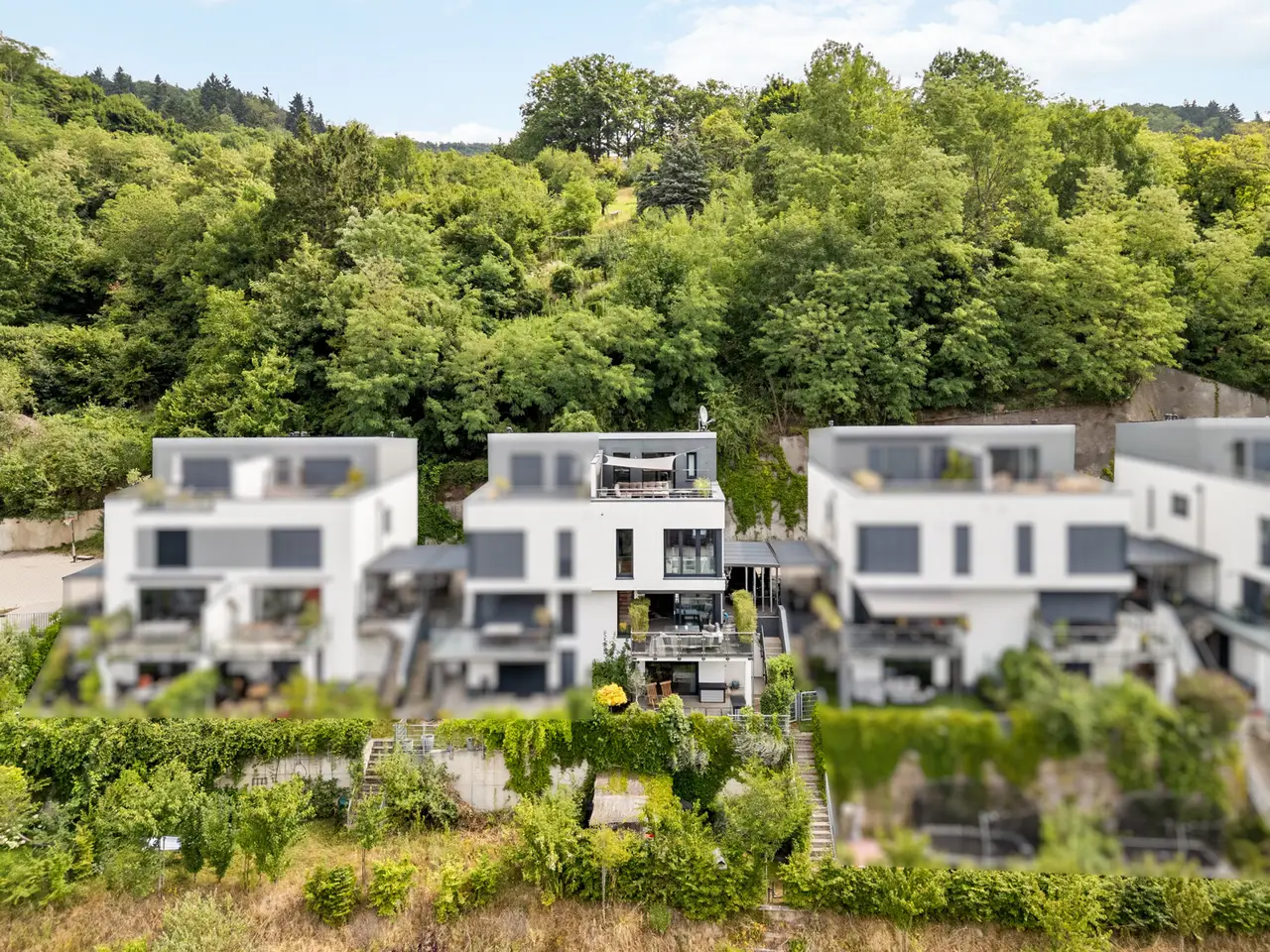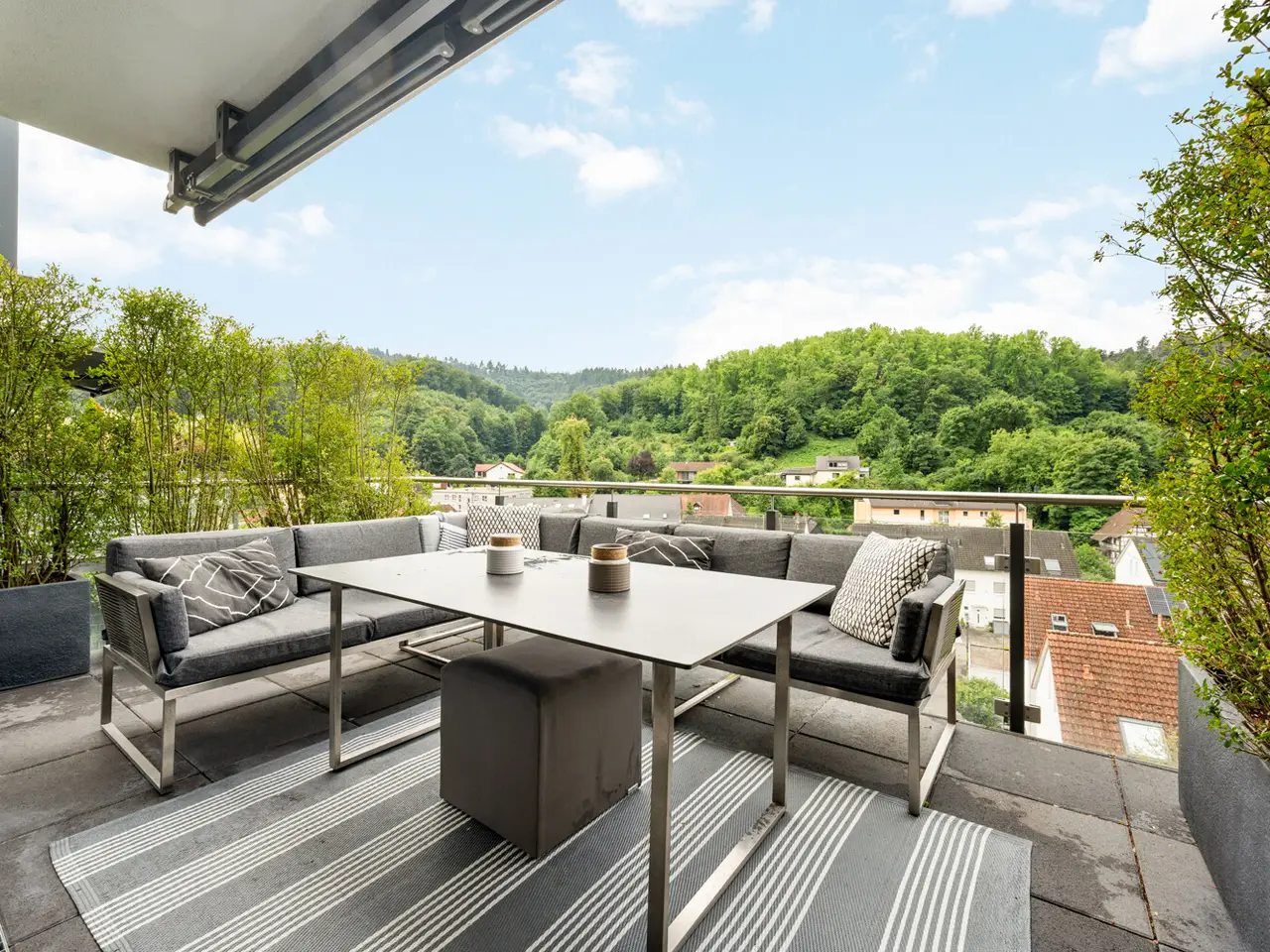 This exclusive semi-detached house was built in 2019 and presents itself with a living space of approx. 222m² on a 311m² plot. The property not only impresses with its spacious architecture and high-quality fittings, but also with its exceptional energy efficiency class A plus, which stands for sustainable and future-oriented living. Upon entering the first floor, an inviting hallway opens up, which is adjoined by a practical checkroom. The light-flooded living and dining area with access to the balcony forms the heart of this floor and creates a harmonious connection between indoor and outdoor space. The elegant, luxurious kitchen impresses with its clear lines and high-quality fixtures and fittings. A guest WC and a storage room complete the well thought-out room layout. A bright hallway, two comfortable children's rooms, a stylish bathroom and another storage room await you on the upper floor. The top floor impresses with a spacious attic studio, an additional guest bathroom and a sunny terrace with a fantastic distant view, which offers a wonderful retreat. An area with a very special charm awaits you on the garden floor. The quiet bedroom opens directly onto the terrace and leads seamlessly into the adjoining dressing area. A real highlight is the luxurious bathroom, which is separated from the bedroom by an elegant glass wall - modern, open and with a touch of extravagance. An external staircase leads from the terrace directly down to the idyllic garden. This floor is rounded off by a conveniently located utility room. The furnishings of this property are impressive with fine parquet flooring and elegant tiles that create a timeless ambience. Two terraces, a balcony and a well-tended garden invite you to linger. Additional comfort is provided by an electric awning, electric blinds, triple-glazed windows and a modern fingerprint door. Video surveillance ensures a high level of security. Underfloor heating provides cozy warmth, while an air-to-water heat pump and a photovoltaic system enable sustainable living at the highest level. A carport and an additional parking space round off the offer. The location in Weinheim combines the quiet living atmosphere of a mature environment with the advantages of an excellent infrastructure. Shopping facilities, schools and leisure activities are all within easy reach, while the charming old town and idyllic surroundings promise a high quality of life. This semi-detached house combines timeless elegance, modern technology and a well thought-out living concept to create a property that meets the highest standards. A home that impresses with both its architecture and its furnishings and offers you a luxurious living experience in a prime location.