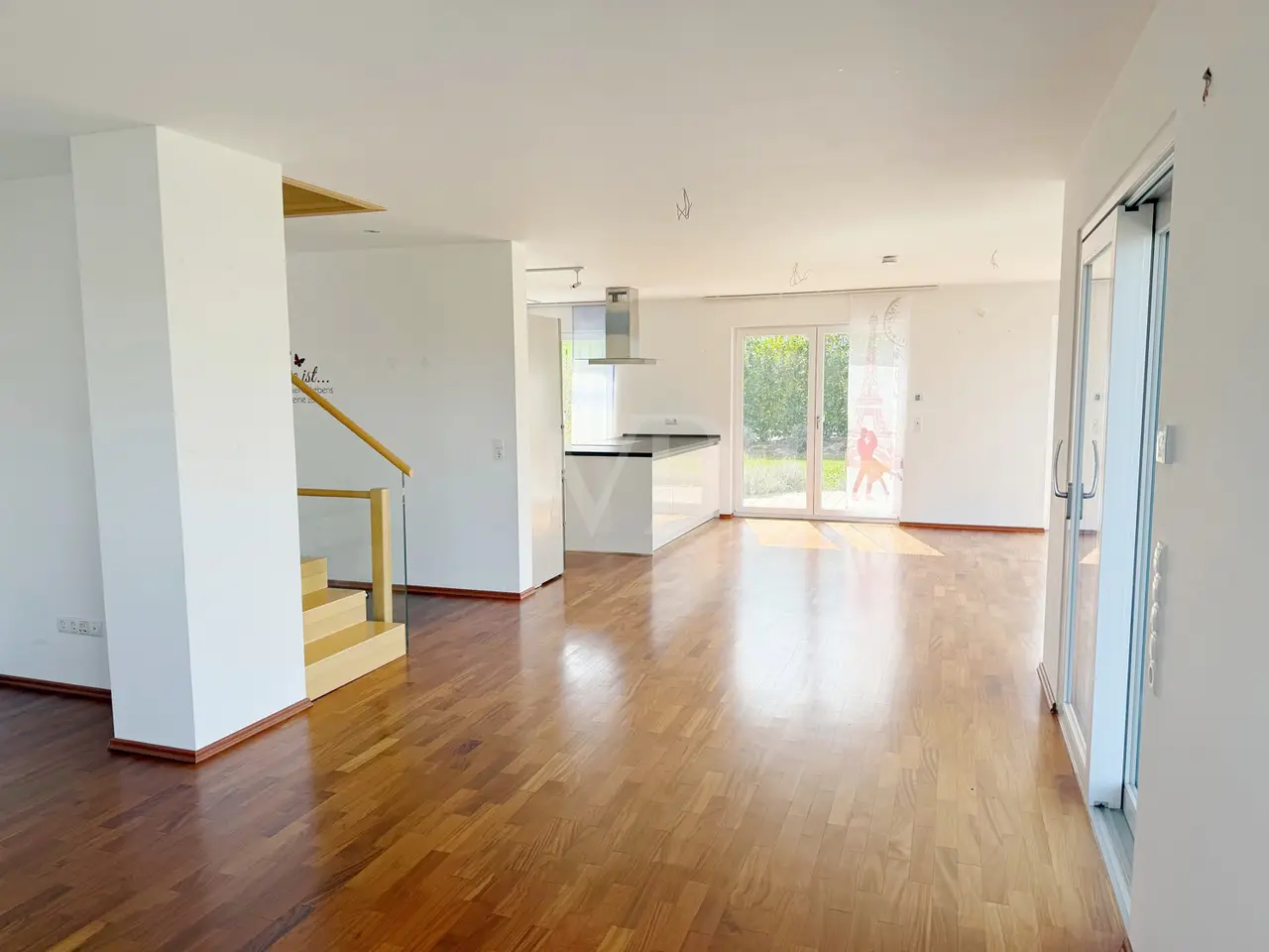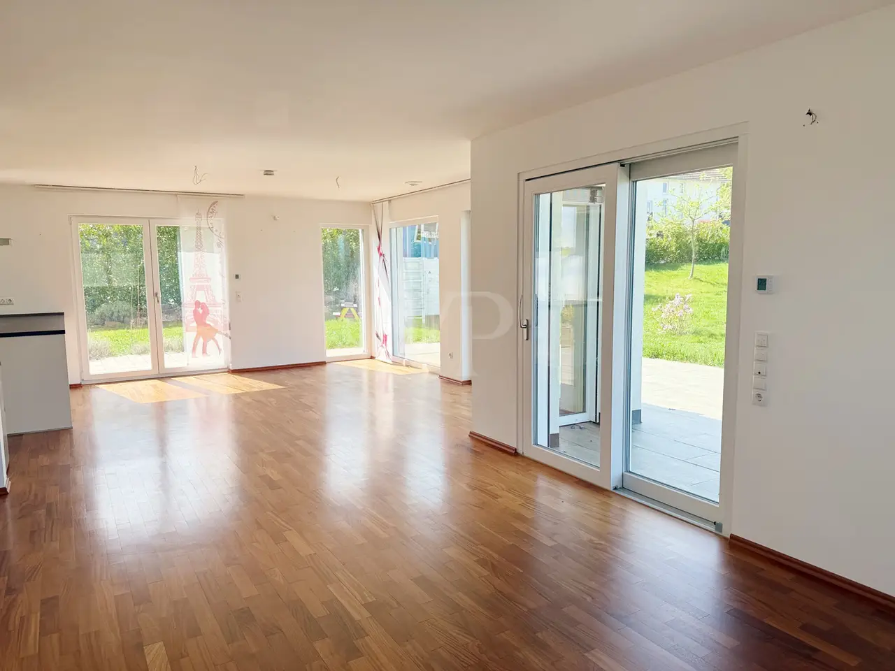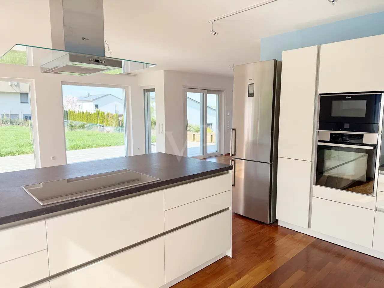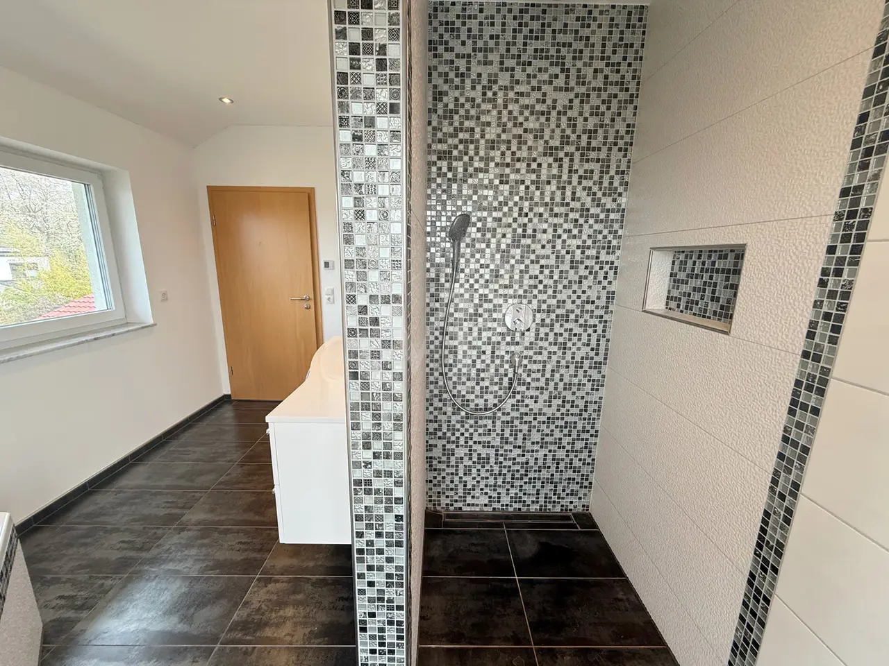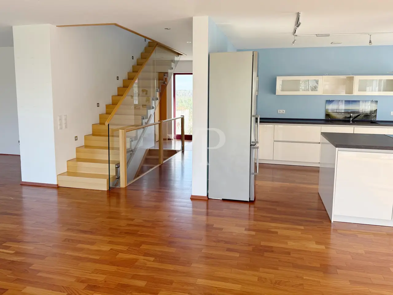 Are you looking for a modern home in a privileged location in Wertheim, with breathtaking views and a large plot of land with 2 separate plots? Then this property will make your heart beat faster. Built in 2016, the house with 2 full storeys and a basement is technically up to date. The ground floor and second floor have approx. 225 m² of living space and leave nothing to be desired. In the entrance area on the first floor, you are first greeted by a spacious hallway with a guest bathroom on the left and a room (office) on the right, before entering the spacious living and dining area. Here, the numerous floor-to-ceiling windows create a bright and friendly atmosphere and also offer several access points to the natural stone terrace. The modern L-shaped kitchen with cooking island has an open design and fits perfectly into the picture. High-quality Doussie parquet flooring was laid on the first floor. This wood has a particularly elegant, warm appearance and is very durable and hard-wearing. The triple-glazed windows are fitted with electric aluminum exterior blinds. A chimney flue built into the living area offers the option of installing a wood-burning stove with little effort. The folding staircase made of solid beech wood leads to the upper floor, which is fitted with high-quality Fineline parquet flooring. A highlight of this floor is the light-flooded gallery, which has 2 floor-to-ceiling windows and therefore invites you to read and relax. The 2 bright, large children's bedrooms, the master bedroom with dressing room and the daylight bathroom with shower and corner bath complete the offer on this floor. The house has a full basement with a cellar room, a technical room, a utility room and a separable apartment/office unit with a shower room in the shell, which can still be designed according to your ideas. The apartment/office unit has a separate entrance and a terrace. The underfloor heating installed throughout the house provides pleasant, even warmth, with the air heat pump standing for energy efficiency! Most of the electricity for heating and the house is generated by the installed photovoltaic system (approx. 20 kWp) and is also made available at night by the built-in electricity storage units (approx. 19 kWh). A controlled ventilation system with heat recovery also ensures energy efficiency and a pleasant indoor climate. The separate double garage with electric sectional door has a power connection where a wall box can be installed for charging electric cars. The outdoor area to the entrance areas on the ground floor and basement was designed with great attention to detail. A great house in a prime location with fantastic views awaits you here!