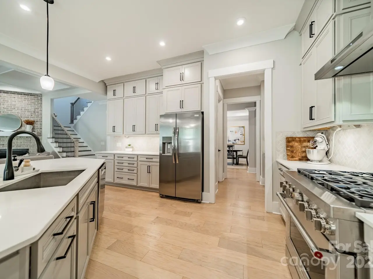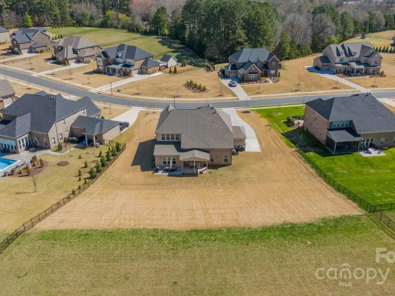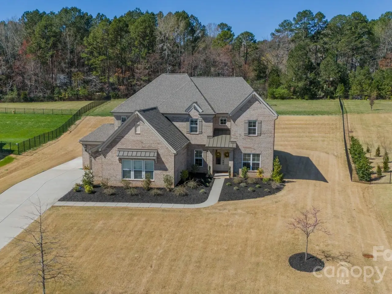 Looking for a magnificent 5 BR, 3.5 Bath modern home on over an acre surrounded by woods? Well look no further! This stunning & virtually brand new 2 story brick home w./ 3 car garage is situated on one of the largest lots in Cavesson (1.3 acres!) & is exactly what youre looking for! The beautifully appointed chefs dream kitchen features high-end appliances, quartz counters, designer tile backsplash, gas range, custom cabinets, butlers/walk-in pantry, oversized island & flows seamlessly into an open floor plan ideal for entertaining. Main level primary suite offers a luxurious shower & garden tub w./ spacious walk-in closet & exquisite finishes. Covered back terrace & beautifully prefinished oak HWs in living areas. Coffered ceiling in LR w/ fireplace sets a cozy tone. Spacious upstairs: 4 BRs w/ 2 full baths, game/bonus, loft & media room! Located in the sought-after Weddington HS district. Close to shopping/dining & easy access to Providence Rd, 485 & Hwy 74. A rare gem!