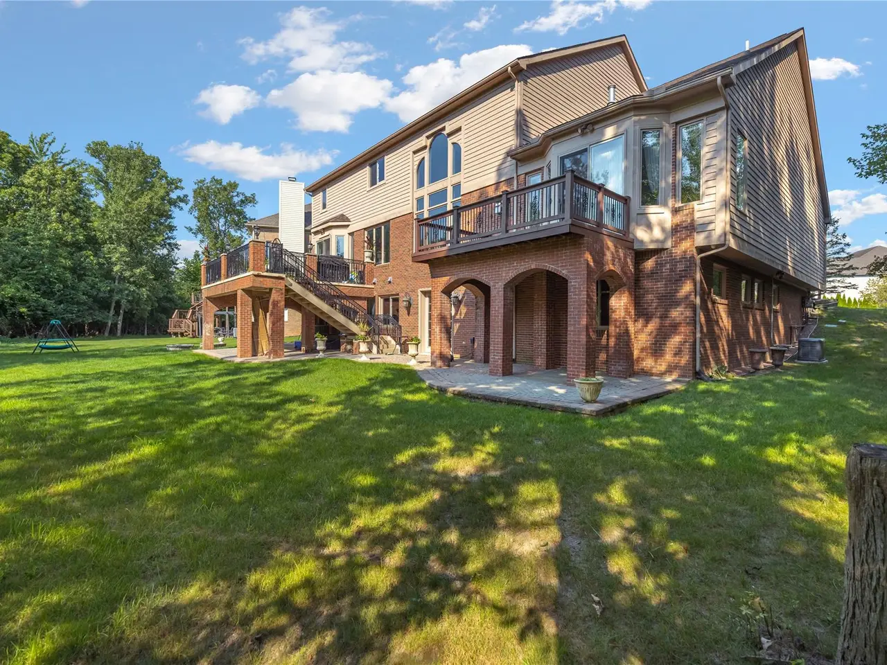Welcome to this exquisite 4-bedroom, 3.2-bath estate featuring a coveted first-floor primary suite with a private deck overlooking beautiful woodlands. Nestled in a quiet cul-de-sac with minimal traffic, this home offers a 3-car heated side-entry garage, circular driveway, and a spacious unfinished walk-out basement with 10-foot ceilings, already plumbed for a bathroom. The gourmet kitchen is a chef’s delight with granite countertops, custom cabinetry, and premium finishes. Elegant crown molding, soaring ceilings, and generously sized rooms add a touch of grandeur, while a large bonus room with skylights above the garage provides the perfect space for a gym, office, playroom, or more. Enjoy peace of mind with a full-house generator and surveillance cameras surrounding the property. The beautifully landscaped grounds create an ideal setting for outdoor entertaining or peaceful relaxation. Conveniently located near expressways, fine dining, shopping, and more this home blends luxury, comfort, and convenience in one remarkable package.