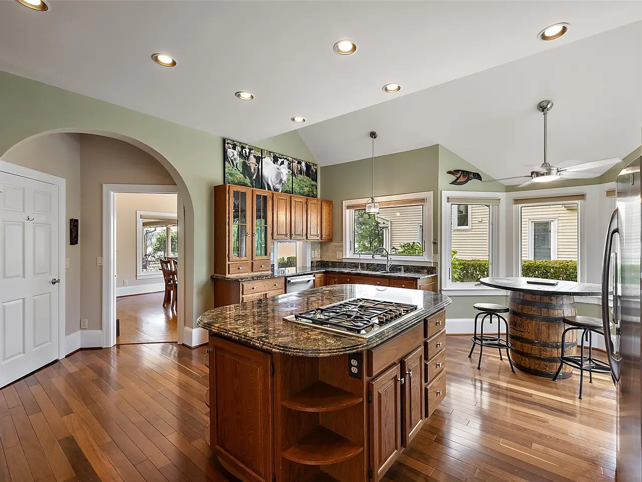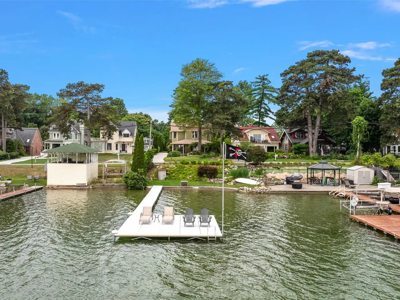Discover the beauty, recreation, and charm of Pine Lake living, where fun and relaxation are just steps from your front door. From the moment you arrive, you're greeted by a wraparound front porch with fabulous lake views, lush landscaping, and a tranquil water feature. Spend sun-drenched days lounging by the water on your private dock, perfect for morning coffee or simply soaking up the views. Or step aboard your boat for a cruise around the exclusive, private waters of beautiful Pine Lake, reserved solely for property owners, with no public boat launches. Inside, the living room offers a welcoming space, sharing a dual-sided fireplace with the generously sized dining area. The kitchen features custom cabinetry, stone countertops, and a cozy breakfast nook that opens to one of two stunning patio spaces. Upstairs, the spacious primary suite includes a fireplace and picturesque lake views. Two additional ensuite bedrooms offer comfort and convenience for family or guests. A versatile flex room is perfect for a home office, gym, or media space. An elevated stone paver patio, crafted from premium materials, and boasting a beautiful wood burning fireplace adds another outdoor area to relax or entertain. The deep, private backyard provides direct access to the W. Bloomfield walking trail. With so many inviting spaces to unwind or host, this home is a true gem, offering the very best of lakefront living. Please see the attached feature sheet for more information.