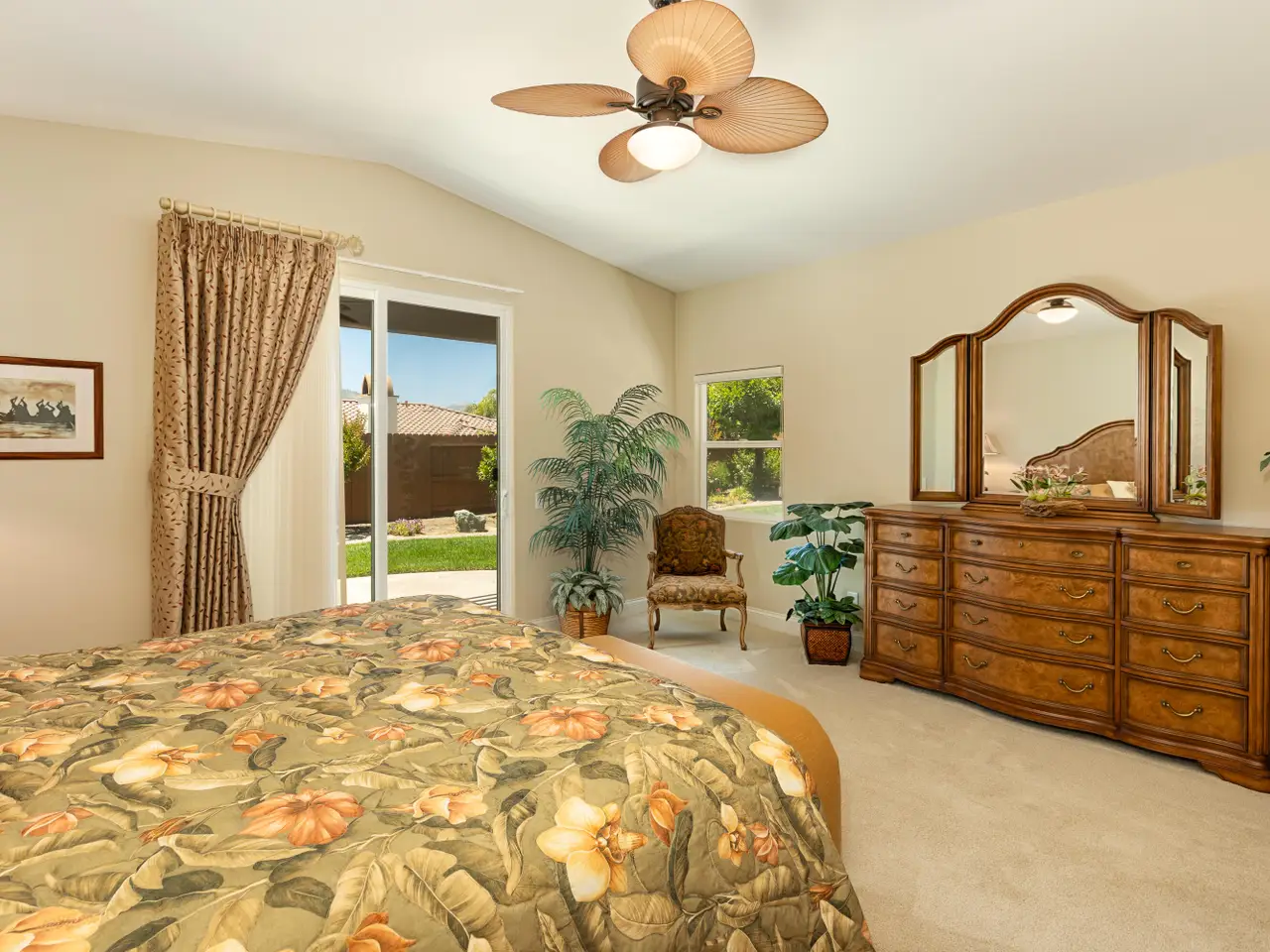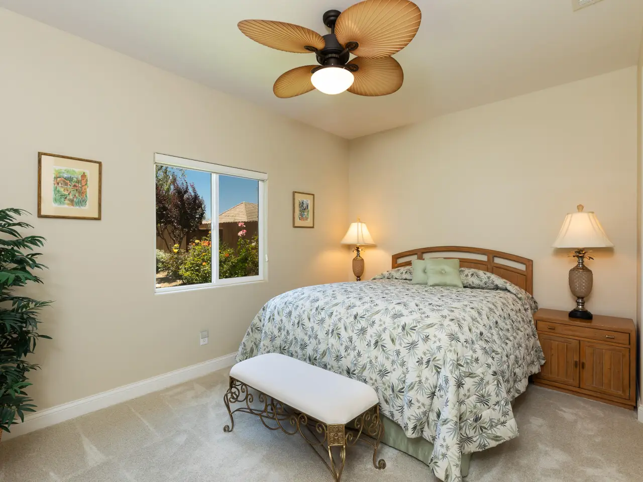 Centrally located within the Santa Ynez Valley is this meticulously maintained 4 bed/3.5 bath air conditioned Skytt Mesa home. Custom iron gates guide you to oversized entry doors that lead to an inviting open floor plan with vaulted ceilings and tile floors. Hobby chef or not, you'll love the kitchen with its island, granite countertops, stainless steel appliances and breakfast nook. Primary suite sits behind double doors and has a vaulted ceiling and a south facing sliding glass door. Dual vanities, soaking tub, frameless glass shower and walk-in closet make up the primary bath. Plenty of room for family or guests with one other ensuite bedroom plus two more that share a hall bath. Paver driveway and professionally landscaped yards compliment the home. Enjoy the soothing backyard with peeks of the mountains from your oversized patio with pergola, amongst lush lawn, colorful flowering plants and shrubs, fruit trees, stone bench and meandering concrete walkways that circle the entire home. Perfect as your full or part-time residence in wine country. Annual assessment for Landscape and Lighting Maintenance billed with property taxes approx. 1400 dollars/year