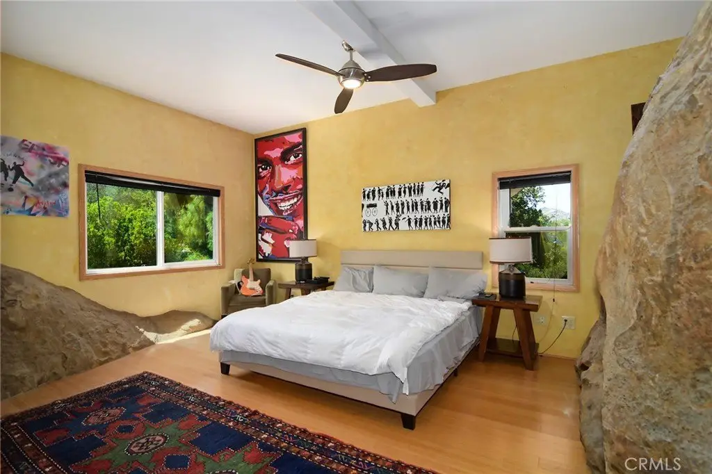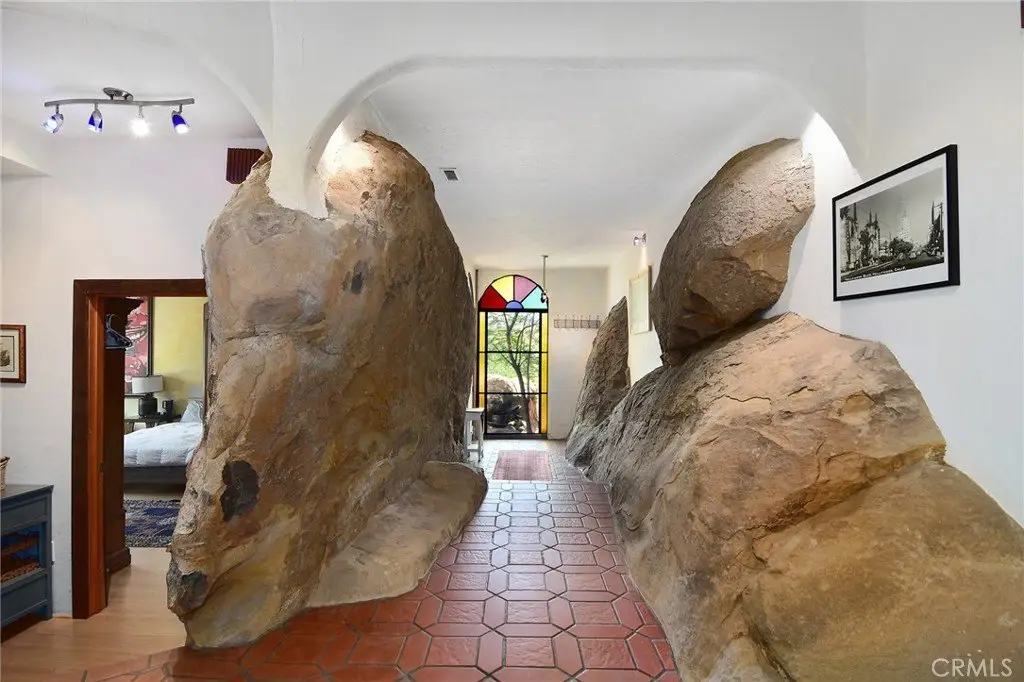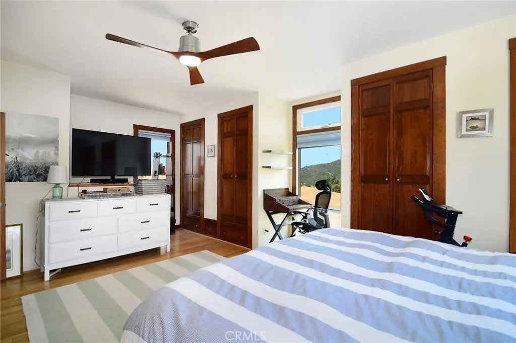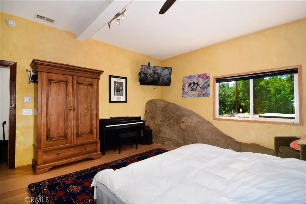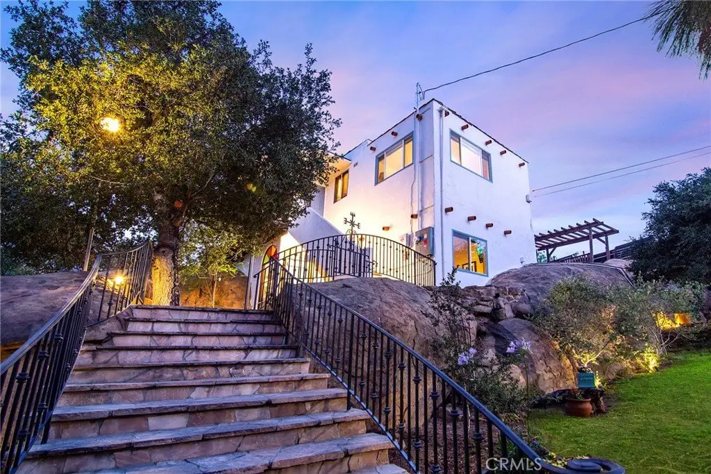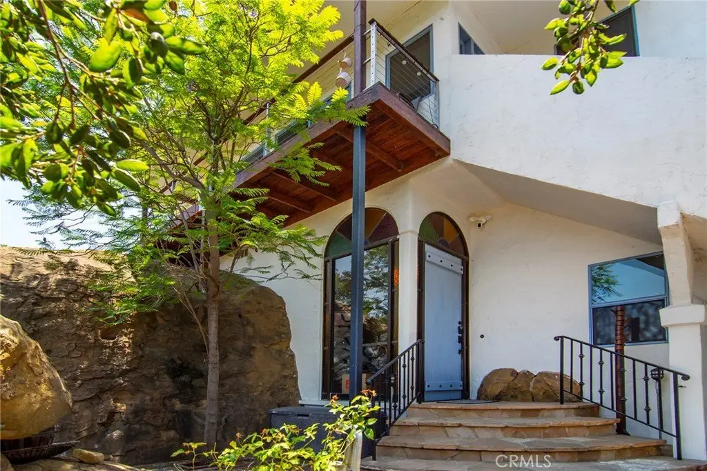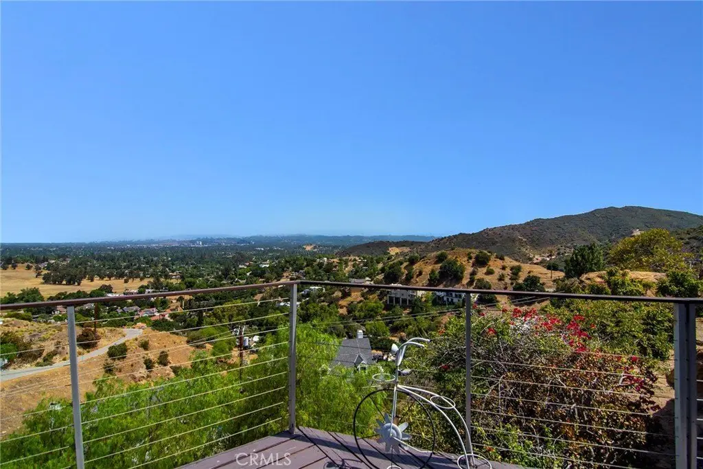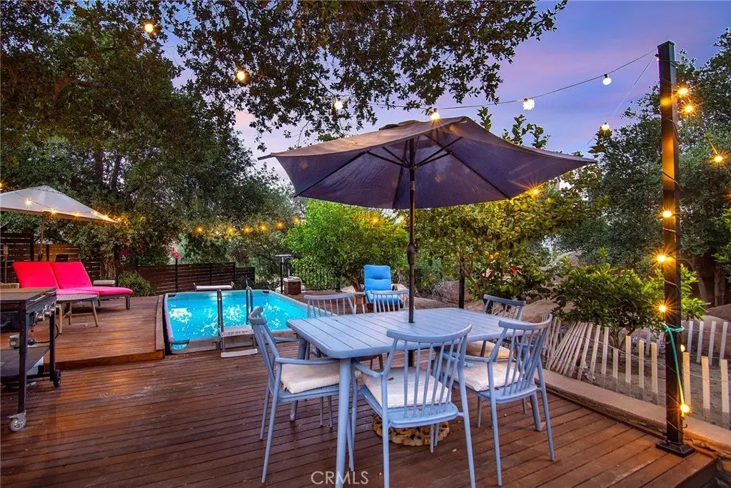 Hollywood Hills charm meets tranquil canyon living in West Hills. This one-of-a-kind Spanish adobe home is perched atop a sandstone ridge, offering unobstructed 360-degree views of the entire San Fernando Valley. Inside, you’ll find 3 bedrooms and 3 full baths across an open-concept floor plan featuring vaulted ceilings with exposed wood beams, creating a warm and airy ambiance. Enjoy seamless indoor-outdoor living with expansive sliding glass doors that open to a wraparound deck, sun deck, and a stylishly integrated above-ground pool with custom wood decking—perfect for relaxing, entertaining, or cooling off beneath the trees. The charming yard and sitting areas offer peaceful spaces to unwind while soaking in canyon and valley views. Modern upgrades include solar panels, a 200-amp electrical panel, landscape lighting, and a dedicated electrical panel by the pool. The property is fully fenced with dense Mangaris wood, and includes two sheds for extra storage, a one-car detached garage with carport, and ample parking. Smart home features include five Ring security cameras, a remote-controlled thermostat, and a WiFi-enabled deadbolt at the front gate, all easily managed from anywhere. Set at the end of a quiet, no-through street, this home offers ultimate privacy, European character, and direct access to incredible hiking trails. Other highlights include a mesh Wi-Fi system indoors and out, majestic oak trees, and the convenience of a main sewer connection (no septic). This rare architectural retreat seamlessly blends character, nature, and modern amenities.