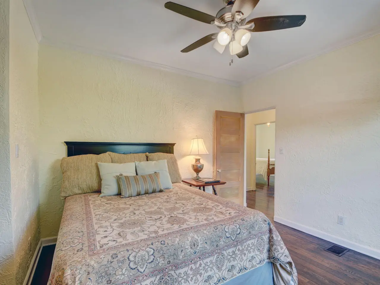 1925 Spanish Mission, hollow tile home built by Hansell Hall, Flamingo Park's premiere builder. Three bedrooms and one bath with SUNROOM & detached 1 car garage. Picture frame hardwood floors in the living/dining/bedrooms & tile in the kitchen/sunroom,/bathroom & laundry room. Kitchen cabinetry w/ seeded glass doors & tile counter tops. Just outside the kitchen is an elevated deck and pergola for private outdoor dining. This home has a wood burning fireplace, many period light fixtures & architectural details throughout. In the backyard there is a large pool and built in spa w/ fenced yard & outside shower. New roof & central air-conditioning in 2022. The detached hollow tile garage, measures 18x10 & is perfect for future expansion & possibilities. COME SEE IT TODAY!