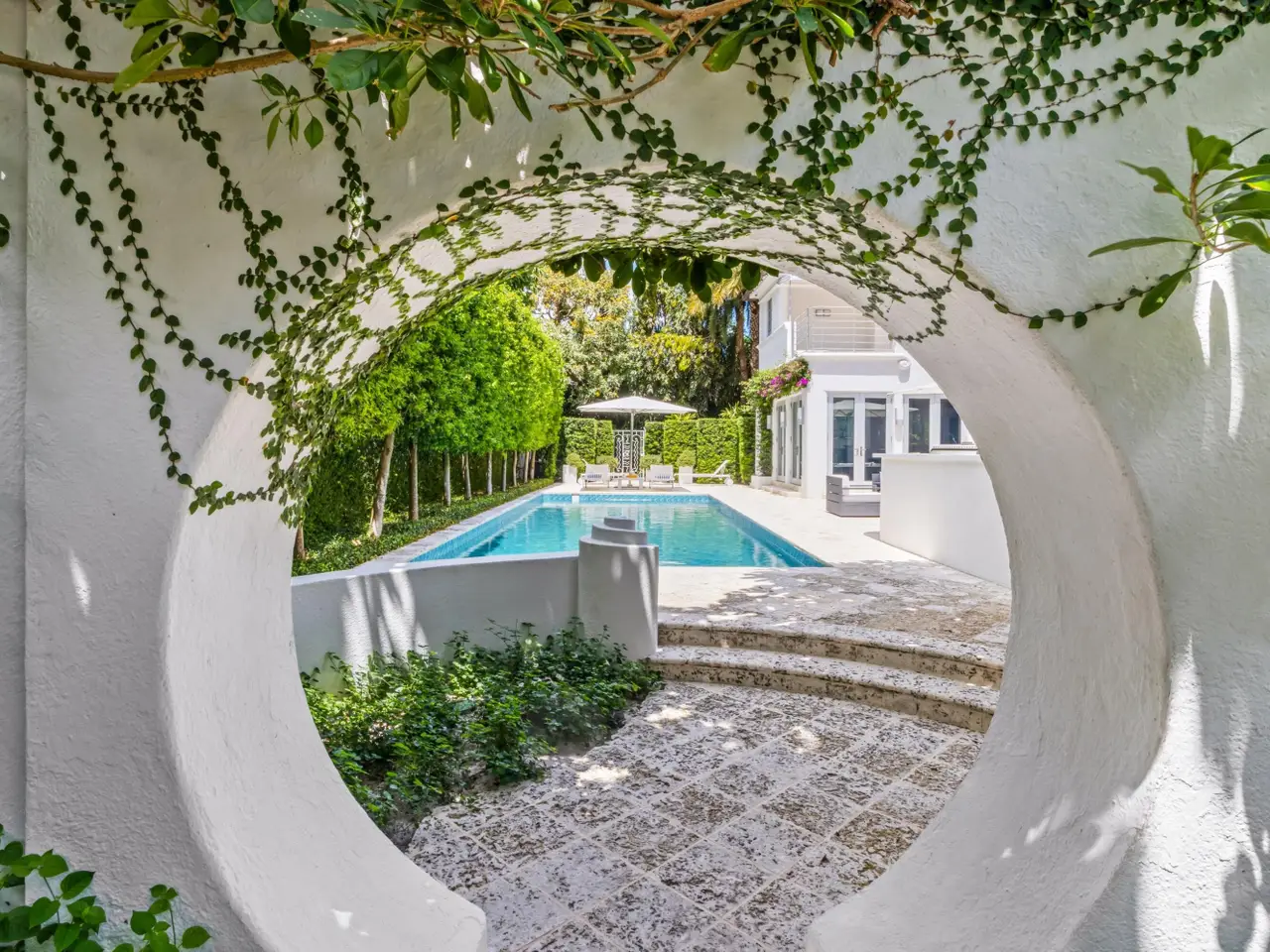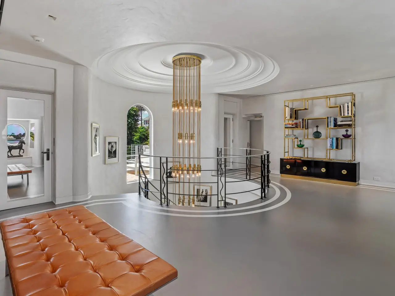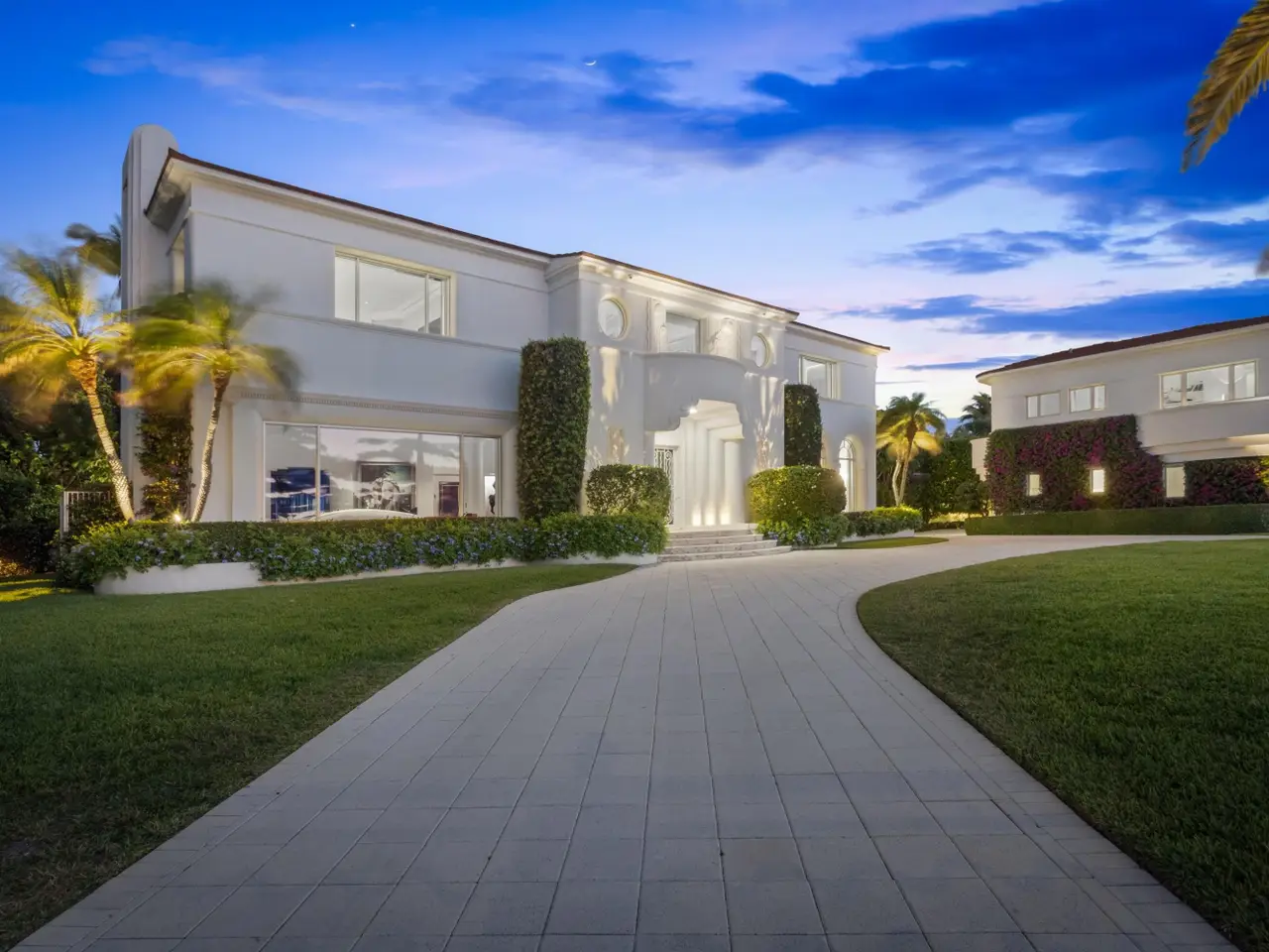 On the West Palm Beach waterfront, this 1937 Belford Shoumate iconic architectural legacy beautifully bridges its nautical moderne heritage with today's modern luxury. Thoughtfully and comprehensively updated, the home retains its signature period details- including sea-foam green terrazzo floors, wavy ironwork banisters, a graceful circular staircase crowned by a domed ceiling frieze, and a curved fireplace-all blending historic artistry with contemporary sophistication. Steamship-inspired railings, a blue-tile-lined pool, and a scrolled stucco banister leading to a side entry complete the picturesque waterfront setting. Featuring 6 BR, 7.1 Ba, elevator, 3-car garage, and outdoor kitchen, this landmark property spans 23,836+/- SF of magnificence along the Intracoastal.
