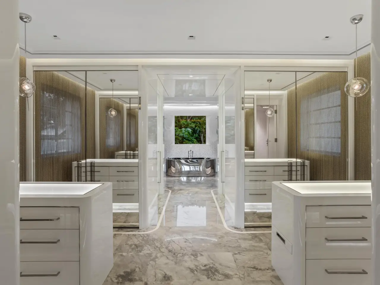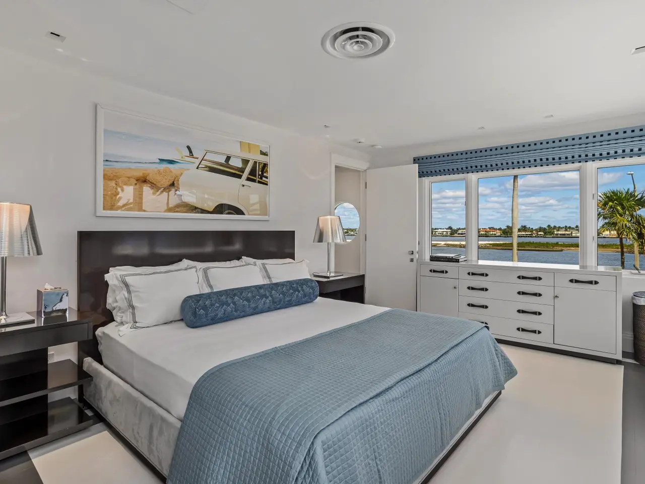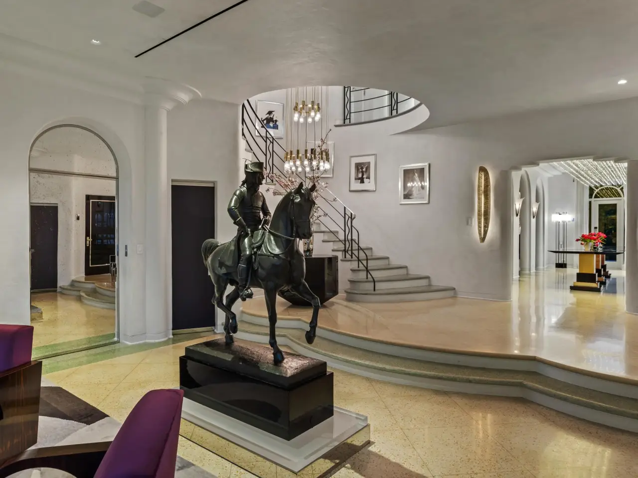 On the West Palm Beach waterfront, this 1937 Belford Shoumate iconic architectural legacy beautifully bridges its nautical moderne heritage with today's modern luxury. Thoughtfully and comprehensively updated, the home retains its signature period details- including sea-foam green terrazzo floors, wavy ironwork banisters, a graceful circular staircase crowned by a domed ceiling frieze, and a curved fireplace-all blending historic artistry with contemporary sophistication. Steamship-inspired railings, a blue-tile-lined pool, and a scrolled stucco banister leading to a side entry complete the picturesque waterfront setting. Featuring 6 BR, 7.1 Ba, elevator, 3-car garage, and outdoor kitchen, this landmark property spans 23,836+/- SF of magnificence along the Intracoastal.