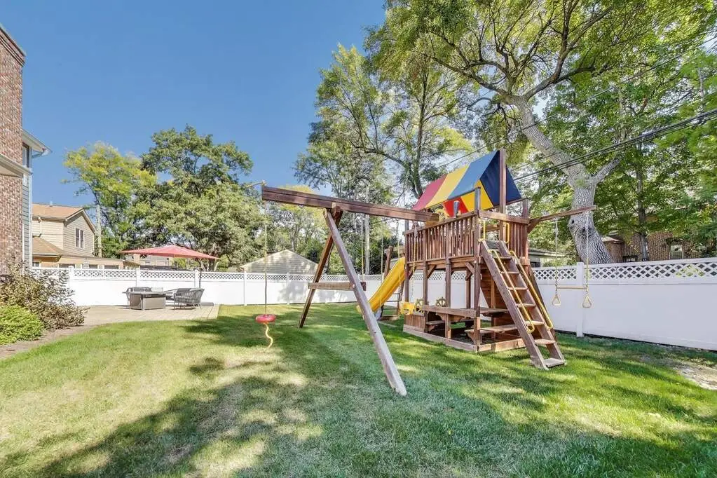 Welcome to this stunning 6-bedroom brick and Hardie Board home, perfectly situated in the highly sought-after Field Park neighborhood. Boasting four levels of beautifully designed living space, this residence is filled with natural light and offers an exceptional floor plan for everyday living and entertaining. The main level features an open yet defined layout with an updated kitchen overlooking the spacious family room-complete with custom built-ins-and a picturesque view of the lush backyard. Enjoy seamless indoor outdoor living with a paver patio and generous yard space on both the back and side of the home. A well-designed mudroom conveniently connects to the attached, insulated two-car garage. Upstairs, the second level offers a luxurious primary suite with two walk-in closets, a second en-suite bedroom with walk-in closet, and two additional bedrooms connected by a shared bath. The rare third-floor retreat-with a full bath-provides flexible options for a guest suite, playroom, office, or additional family room. The finished lower level is perfect for entertaining, featuring a large recreation area, custom bar, additional bedroom, full bath, and plenty of storage. Extensive recent updates include a new roof, windows, Hardie Board siding, professional landscaping, replaced mechanicals, interior and exterior Lutron lighting, insulated garage, mudroom, fireplace, privacy fence, driveway, and more. Truly move-in ready, this exceptional home combines timeless design, modern updates, and a prime location in one of Western Springs' most desired neighborhoods.