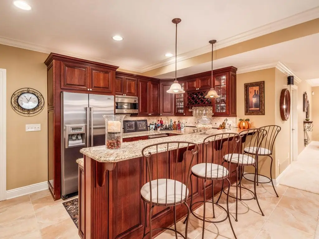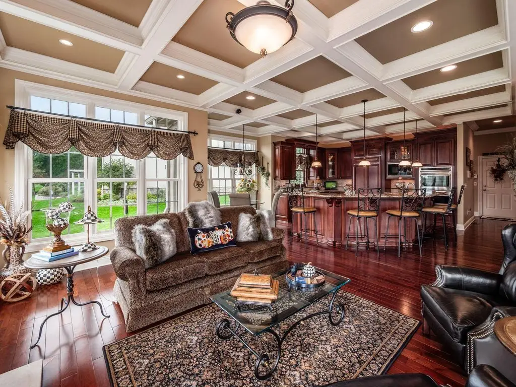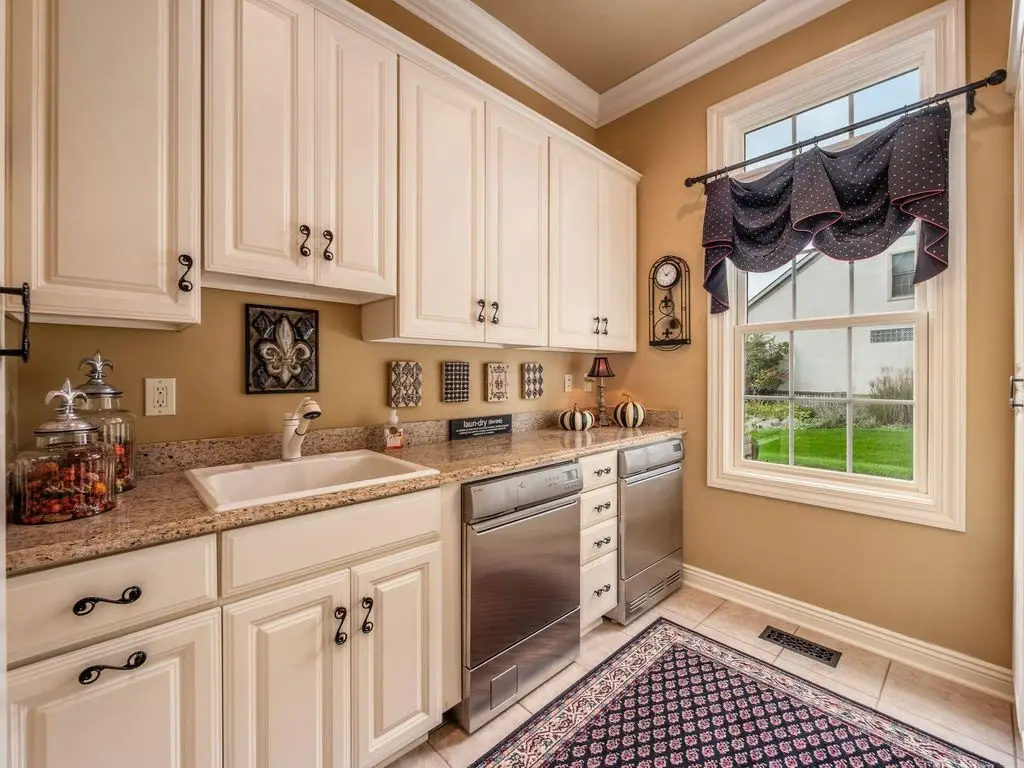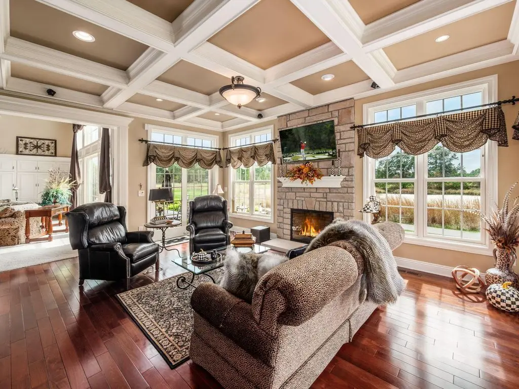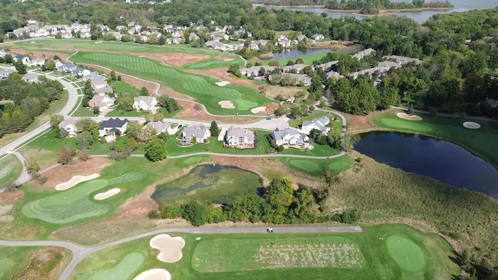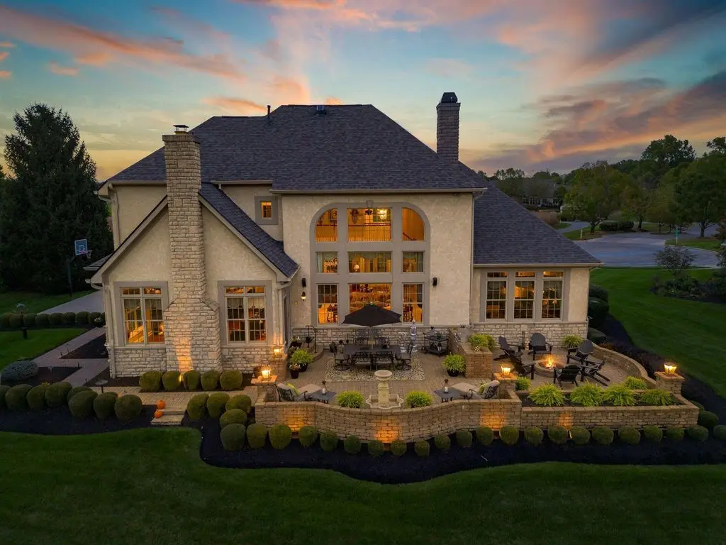 Experience the ultimate in luxury living with this extraordinary Romanelli & Hughes custom-built home featuring a first-floor primary suite and spectacular panoramic golf course and pond views in the prestigious Medallion Estates community. Nearly 6,200 sq ft of refined living space blends timeless design with exceptional craftsmanship. The Jae Company-designed kitchen offers Wolf & Sub-Zero appliances, granite counters, center island, custom cabinetry, and a wet bar connecting the hearth, dining, and great rooms. The coffered family room features a stone fireplace, while a paneled office with built-ins provides a private workspace. The first-floor primary suite includes tray ceiling, golf views, and a spa-inspired bath with soaking tub, glass shower, dual vanities, and custom closet. A Jae Company laundry features Asko washer/dryer, built-ins, and pull-out shelving. Upstairs are three bedrooms, two full baths, and a loft-style hallway overlooking the great room.The finished lower level includes a full bar with Viking appliances, media and game areas, a fifth bedroom suite, workout room with mirrored wall, and a second laundry/utility area. Outdoor living is exceptional - a paver patio with built-in Lion grill, fire pit, water feature, and unobstructed golf and pond views. Additional highlights: new roof (2022), new HVAC (2023), 3-car garage, irrigation system, central vac, and premium lot with no homes in front or behind. Owner is licensed real estate agent.