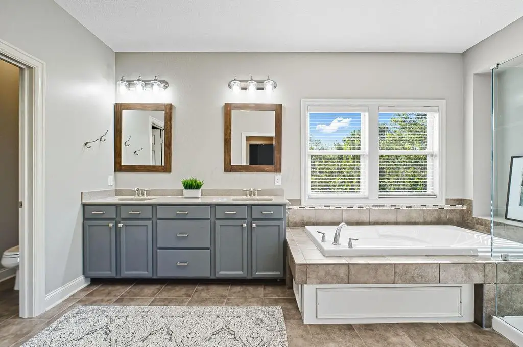 Luxury Living in Harvest Wind - Westerville Schools Built by renowned custom builder Bob Webb, this exquisite 4-bedroom, 4.5-bath home in the Harvest Wind subdivision offers over 4,000 sq ft of finished living space. Combining timeless craftsmanship with modern upgrades, this home delivers the perfect blend of elegance, comfort, and community. Each level features 9-foot ceilings throughout, a 10-foot ceiling in the private office, and a grand 4-foot wide staircase. The remodeled chef's kitchen, equipped with high-end finishes, opens to spacious living and dining areas, perfect for hosting gatherings. The primary suite is a private retreat with a large soaking tub, two walk-in closets, and a spa-inspired bath. Upstairs, a Jack-and-Jill suite connects two bedrooms, while a second suite offers ideal guest accommodations. The finished lower level is designed for entertaining with a full bar, full bath, workshop, home gym, and large storage area. Outside, enjoy a spacious patio with covered dining area, built-in grill, in-ground sprinkler system, and invisible fence. An extended 3-car garage and mudroom add daily convenience, while the 3-zoned HVAC system (gas heat), and recent exterior painting ensure comfort and peace of mind. Living in Harvest Wind means more than just a beautiful home - it's a lifestyle. Residents enjoy pickleball courts, walking trails, two playgrounds, a basketball court, and a scenic park. The neighborhood's tree-lined streets, spacious yards, and friendly atmosphere create a welcoming community you'll love coming home to, all within minutes of Westerville schools.