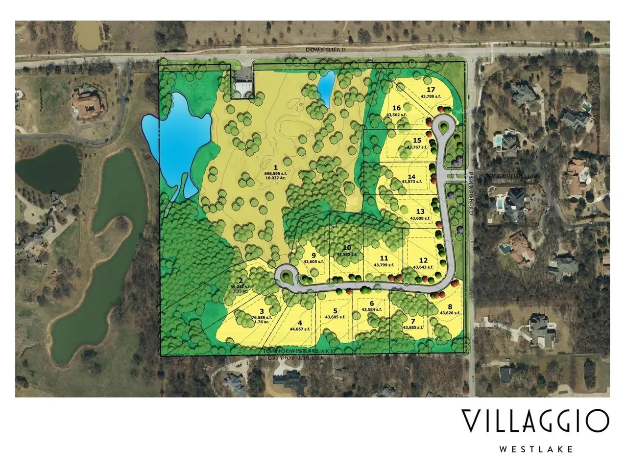 Welcome to VILLAGIO, Westlake's newest Premiere LUXURY subdivision. This Gated, tranquil and wooded community enjoys beautiful topography and spacious tree-filled lots with a stone subdivision wall, and will enjoy the security and privacy of a fully gated, kiosk security operated entrance. This generous 1+ acre pie-shaped cul-de-sac Homesite is ready for you to Bring Your Own Luxury Approved Builder and create the Estate of your Dreams!!!! Seize this rare opportunity now to secure one of the last remaining lots in this highly sought-after small 17 estate homesite enclave. Students can attend the Westlake Academy's International Baccalaureate Program or apply through Open Enrollment to the prestigious Southlake Carroll ISD.