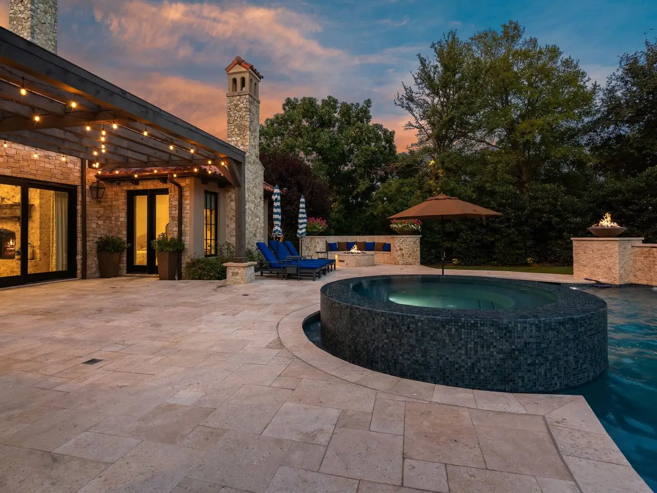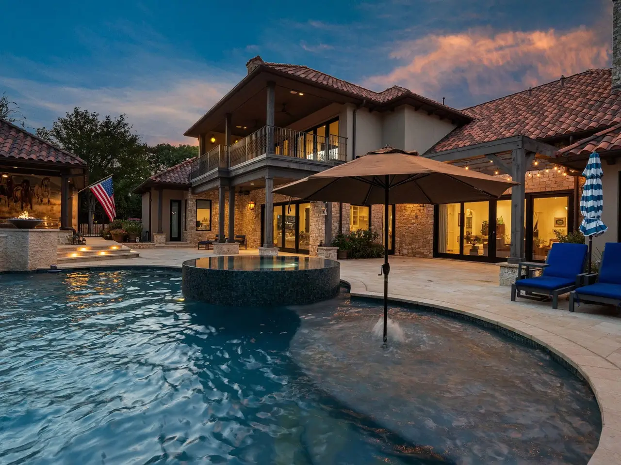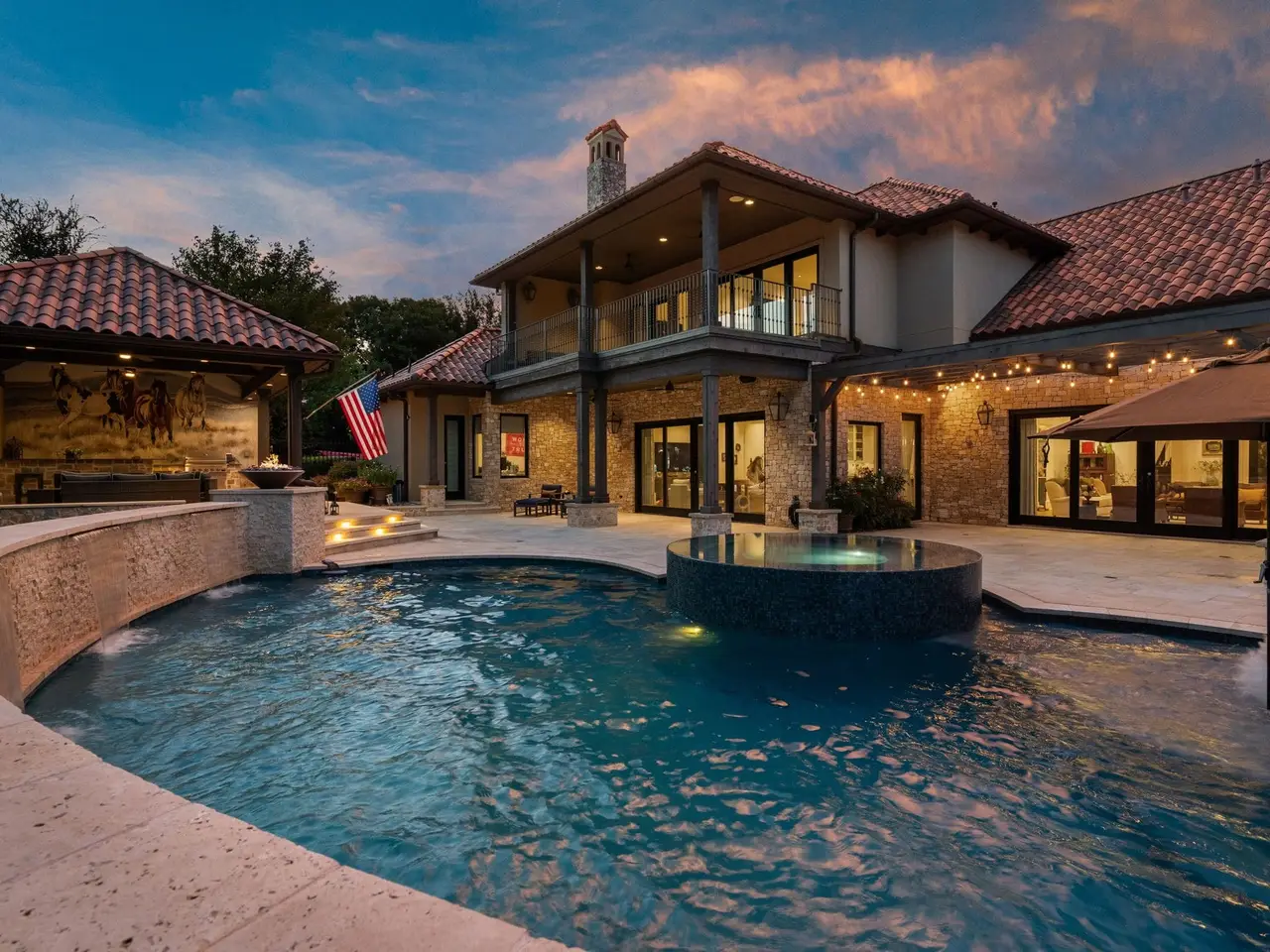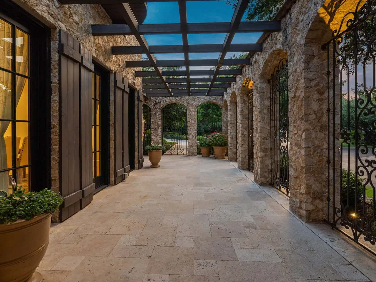 Santa Barbara-inspired estate in Vaquero, privately tucked on a cul-de-sac within the coveted guarded and gated community. This 4 bedroom, 4 full and 3 half bath home features a 4-car garage with expanded driveway for additional parking. The gourmet kitchen is equipped with Thermador appliances, quartzite countertops, custom cabinetry and reclaimed warm beams, complemented by all-new Pella windows and doors and designer light fixtures throughout. The luxurious primary suite offers a sitting area with fireplace, while the spa-like bath is finished with Cremo Delicato marble countertops, Calacatta Gold marble floors and a zero-transition oversized shower. Upstairs youll find two bedrooms, a spacious game room and media room, perfect for entertaining and family fun. The outdoor oasis includes a NEW sparkling Claffey pool and spa, fire pit, pergola with grilling station and lush landscaping. Premier location with access to Westlake Academy IB World School and the option for a Social Vaquero membership available separately.