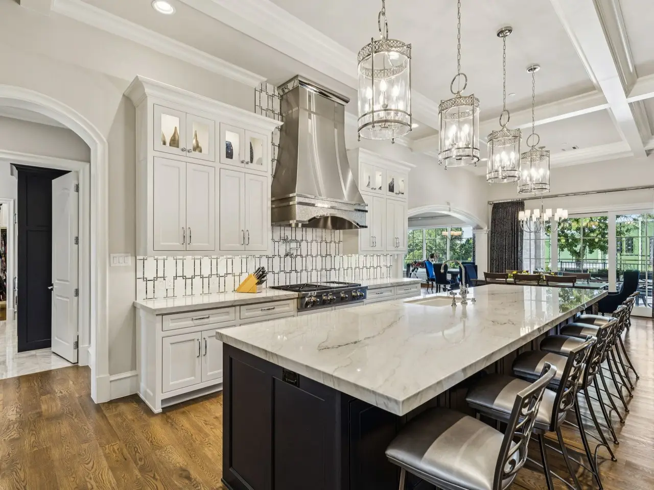 Welcome Home to this impeccable ONE STORY, 8 CAR garage home in the Exclusive Guard Gated neighborhood of Quail Hollow, Westlake! Perfectly custom designed for elegant entertaining & everyday living, this home boasts European inspired stone exterior design, high end of custom finishes, exquisite hardware, wood + marble flooring, custom designed draperies throughout. Welcome your guests through the impressive circular drive to a grand Foyer and Executive Study. The open plan Great rm area, boasts a warm Family rm w a beautiful cast stone fireplace & a wall of sliding Pella doors that brings the outside in. The spacious sunlit Dining rm also has sliding Pella doors to the outdoor living & kitchen area. The Chef's Kitchen is a Dream, w top of the line appliances, custom designed stainless steel vent hood + huge island perfect for gathering. Adjoining the Kitchen you will find a fully equipped Prep Kitchen for all your entertaining needs. Enjoy the evening in the large Family Game rm complete w Wet Bar & separate Media rm for your home viewing enjoyment. The Primary Suite is stunning w designer finishes + custom ceiling molding, marble floors & laser cut accents, spacious Spa Bath & 2 large custom Closets. Two Additional Bedroom Suites enjoy lovely bathrooms & walk-in closets. Guests will never want to leave once they enter the private Casita - Guest Quarters w banquette Dining area, Kitchenette, Liv Room w fireplace, luxury hotel quality Bdrm suite & Bath. Step outdoors to enjoy an expansive screened Liv area w fireplace + Din area & Outdoor Kitchen featuring a large grill, sink, storage & gas Pizza Oven! Enjoy your own Orchard w 22 producing Fruit trees & a working organic garden w raised beds. Tons of grass for everyone to run & play, plus mature trees. Thermally efficient w Pella windows & doors, plus full foam encapsulation. Laundry room accommodates dual washers & dual dryers. Incredible 8 Car tandem Garage w high ceilings, epoxy floors & tons of storage!