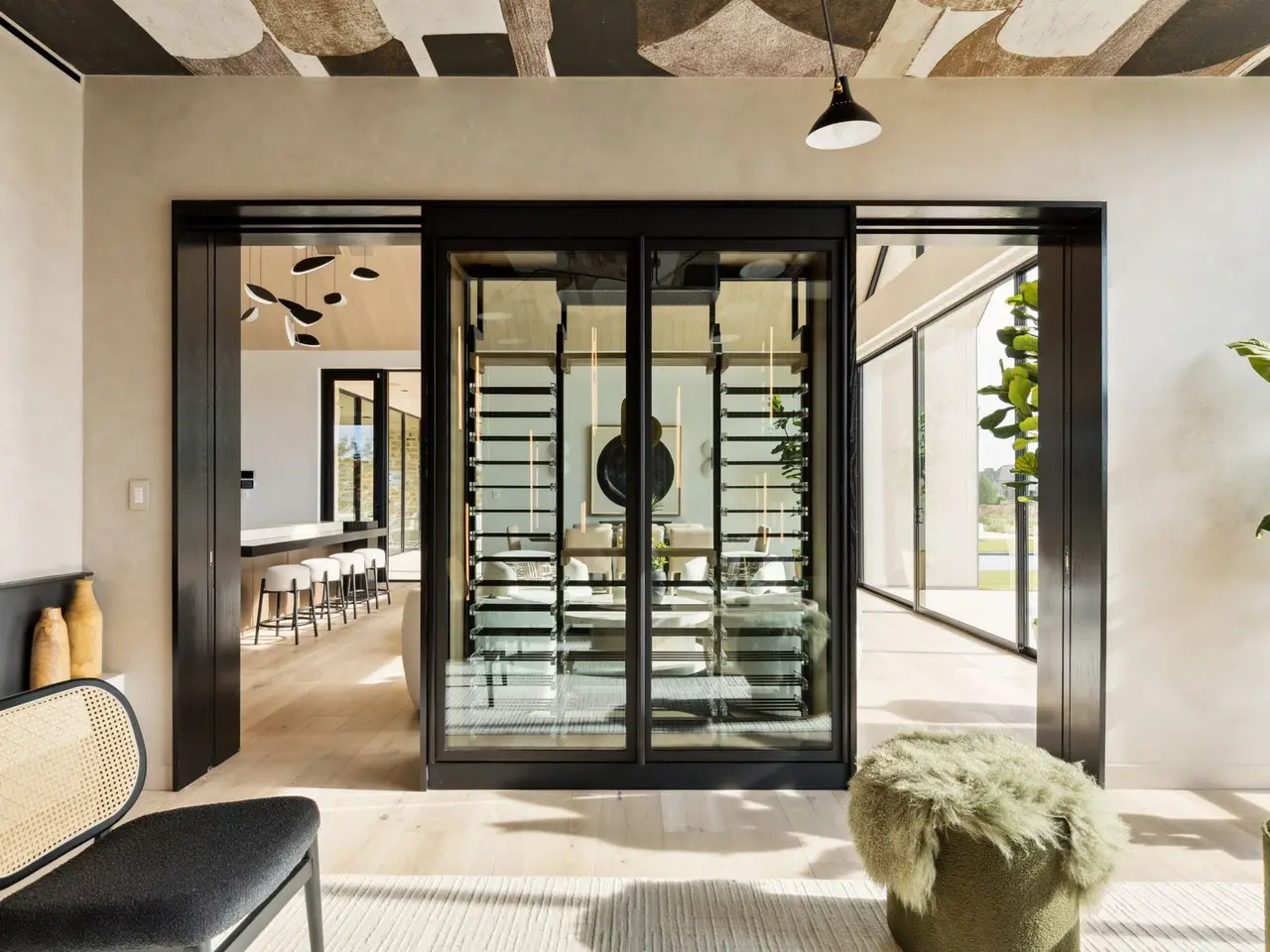 • Temp-controlled glass wine wall separating lounge and family room