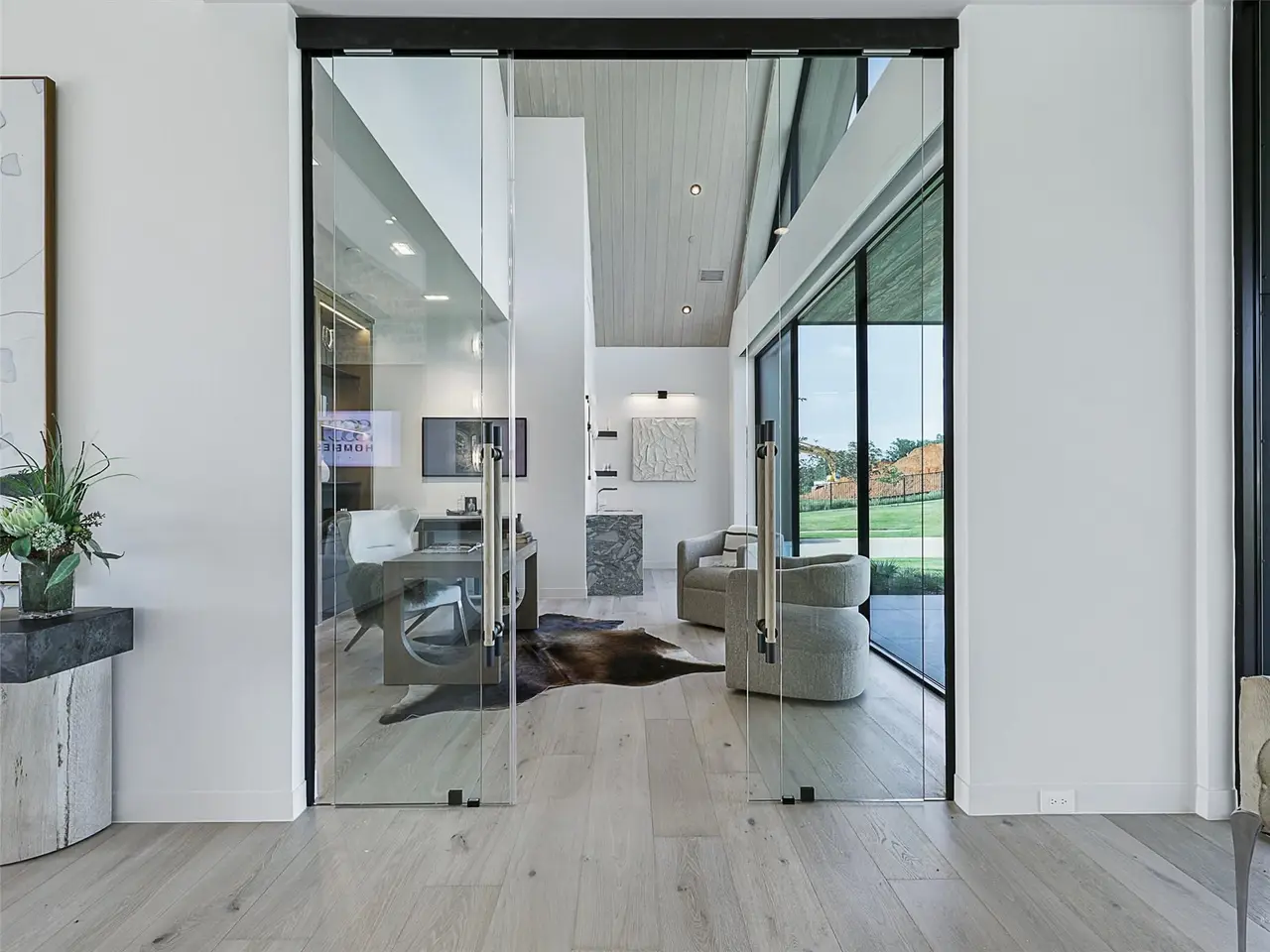 • Architectural foyer with reeded glass and steel detail