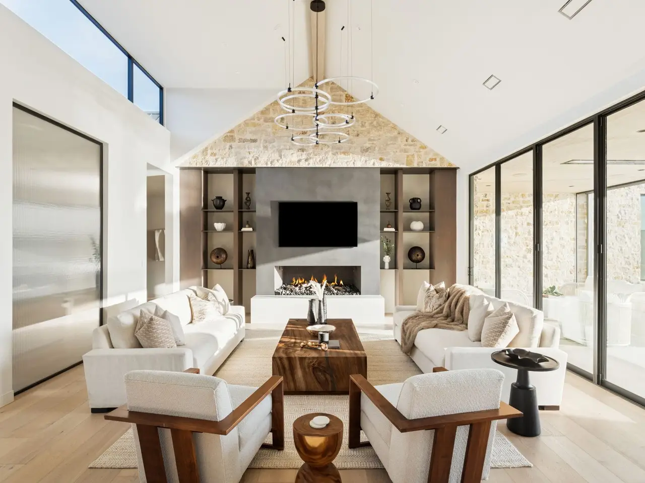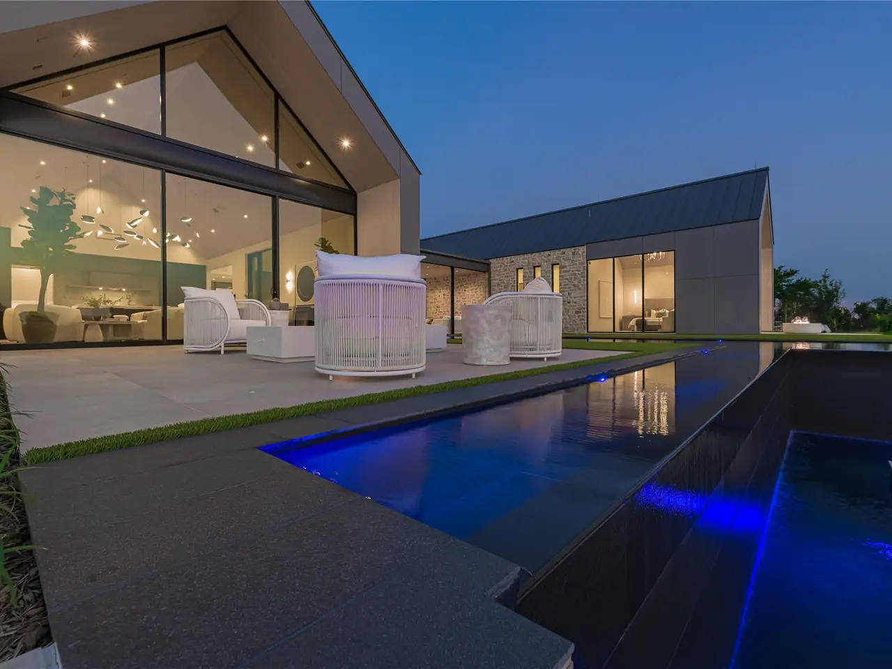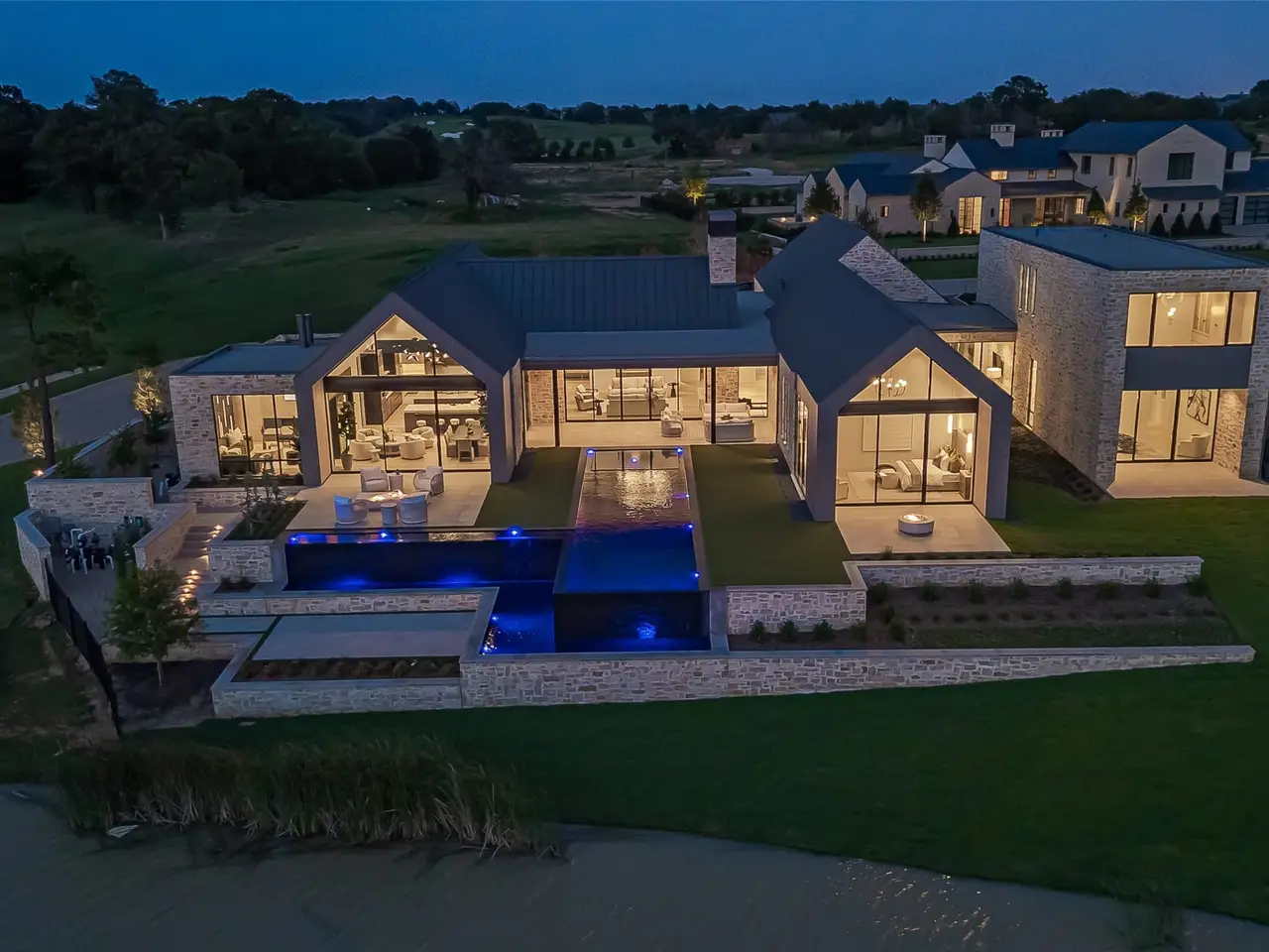 • Floor-to-ceiling walls of glass maximizing lakefront views