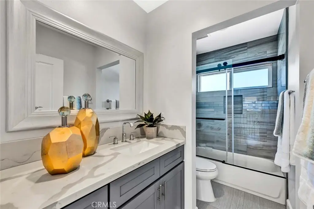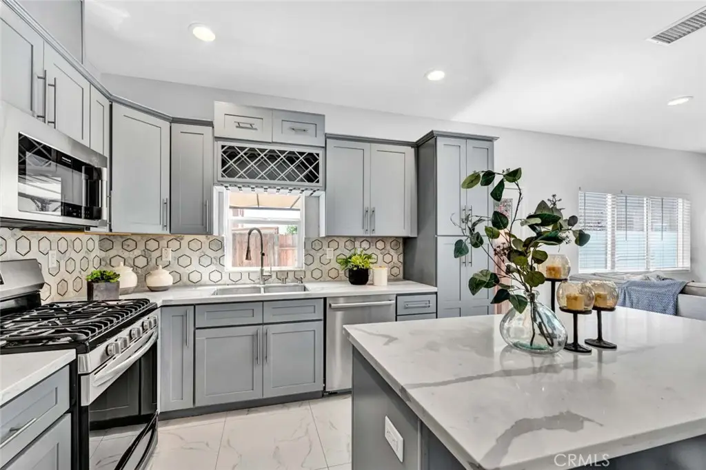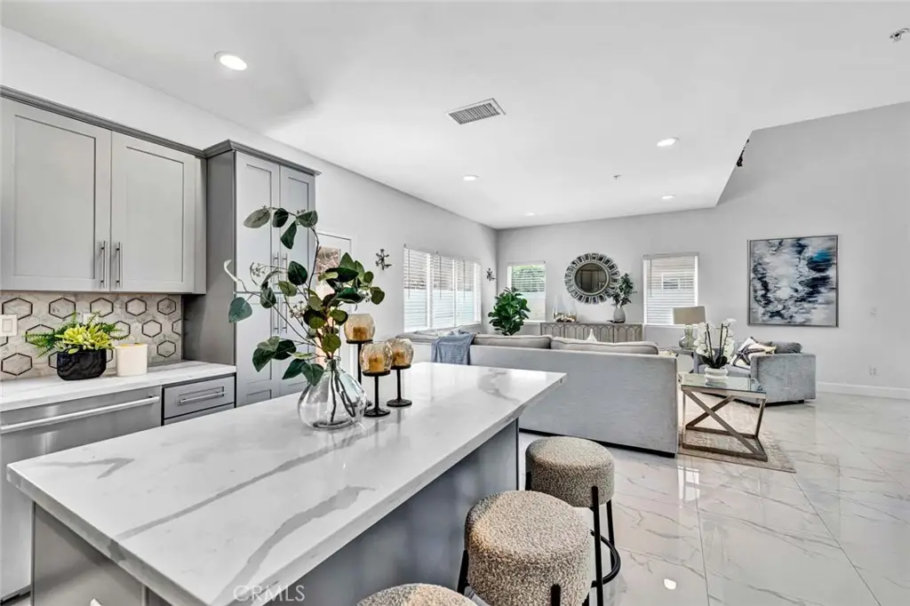 Nestled in an exclusive small enclave of just three newly built detached homes, 8196 18th Street offers luxury living, just steps from Westminster's Liberty Park This stunning 4 bedroom, 3 bathroom residence (including one downstairs bedroom, currently an office, and bath) and spans 2,105 square feet and features a finished 2-car garage plus a full 2-car driveway. Sophisticated architectural details and expert craftsmanship is evident throughout this beautiful home with its open concept floorplan, high ceilings, an abundance of natural light, central A/C, and upscale finishes including wood laminate and designer marble-type tile flooring, dual pane windows, LED recessed lighting, ceiling fans, quartz countertops, self-closing cabinetry, raised panel interior doors, and striking light fixtures. hand-crafted wood and wrought iron staircase railings, and a chef's dream kitchen complete with center island with seating, chic designer tile backsplash, and stainless appliances. The open layout seamlessly connects the kitchen to the living and dining areas, creating a harmonious flow that's ideal for both entertaining and everyday living. A French door opens to the wrap-around patio, ideal for outdoor dining and barbecues. Upstairs there is a loft with a desk niche and a cat walk with wrought iron railing that connects all the rooms and is open to the living room below. with the wrought iron railing. The luxurious primary suite features a large walk-in closet and a spa-style bathroom with dual sinks, privacy toilet, a jetted soaking tub, and separate walk-in shower with frameless glass surround. 2 additional bedrooms with mirrored closets, a guest bath with tub/shower combo, and an oversized laundry room with cabinets and utility sink complete the upper level. It boasts lovely curb appeal with stacked stone siding, tile roof, concrete planters with beautiful foliage, and beautiful walkway through the common area. Though classified as a detached condo, this home is truly a luxurious, highly desired single family home offering refined, turnkey living close to shopping, dining, schools, parks, and the heart of Little Saigon.
