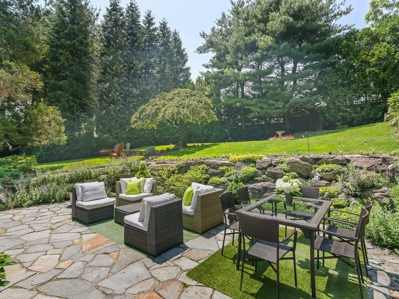 • Stone patios and lush gardens for entertaining