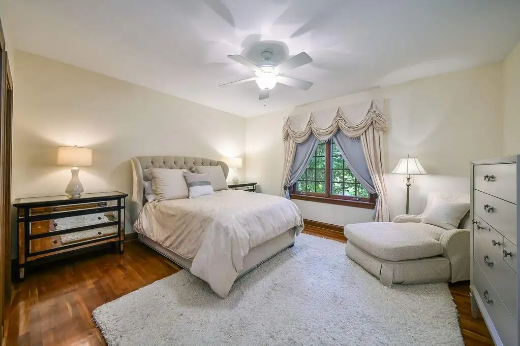 Luxurious primary suite with spa-like marble bathroom