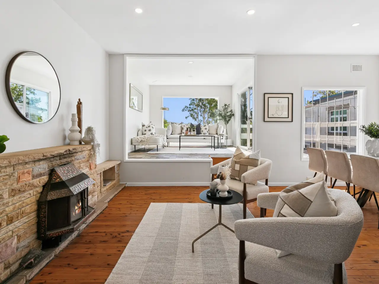 • Light-filled living and dining spaces with wide picture windows