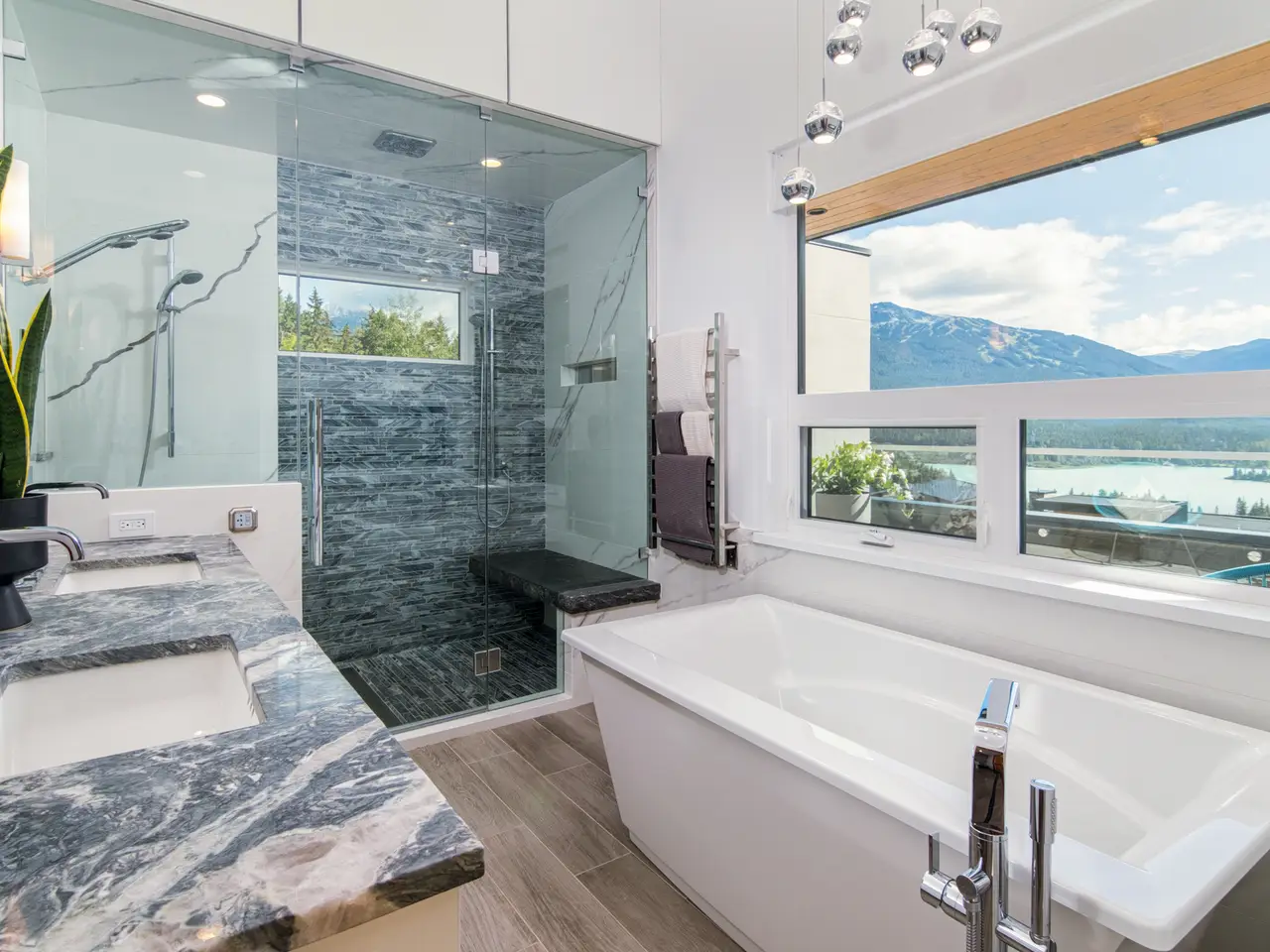 This approximately 4,000 square foot luxury residence in Baxter Creek offers unparalleled views of Whistler's iconic mountains, Green Lake, and the valley. The open-concept design flows seamlessly between the living, dining, and kitchen spaces-ideal for entertaining. The master suite features a private deck, perfect for morning coffee. Two additional bedrooms with ensuites are located upstairs, with two more bedrooms and a media room on the lower level. Enjoy the community's pool, and hot tub.