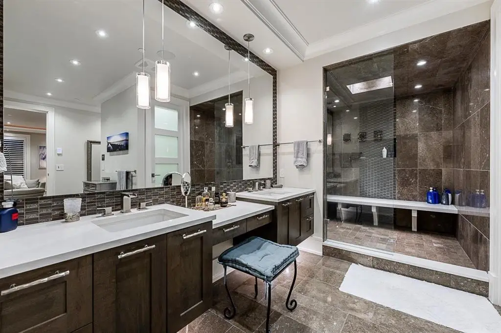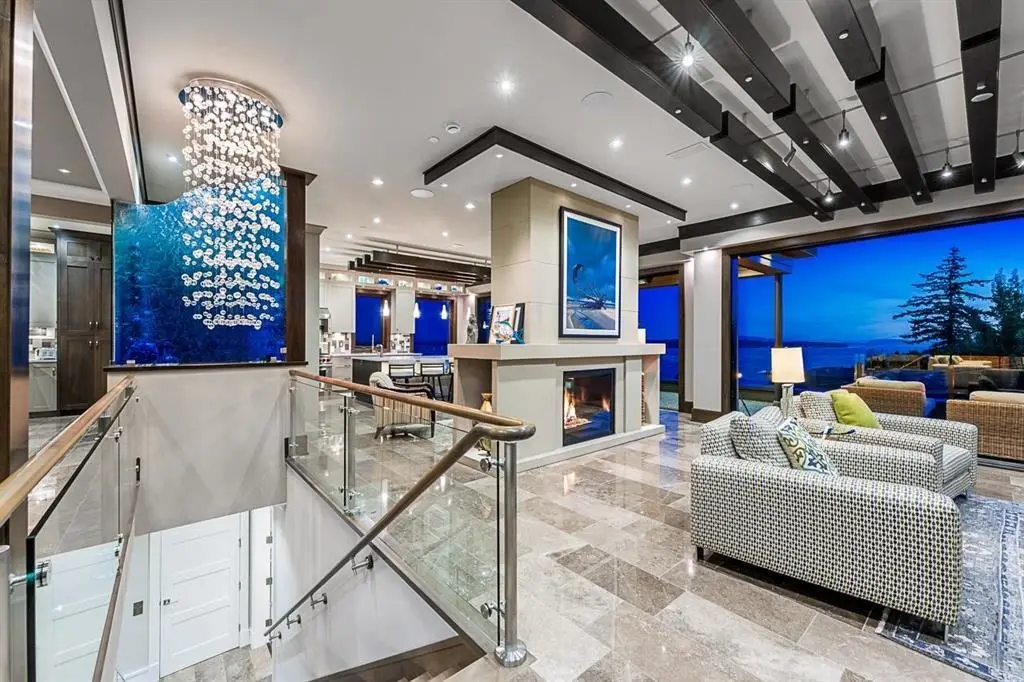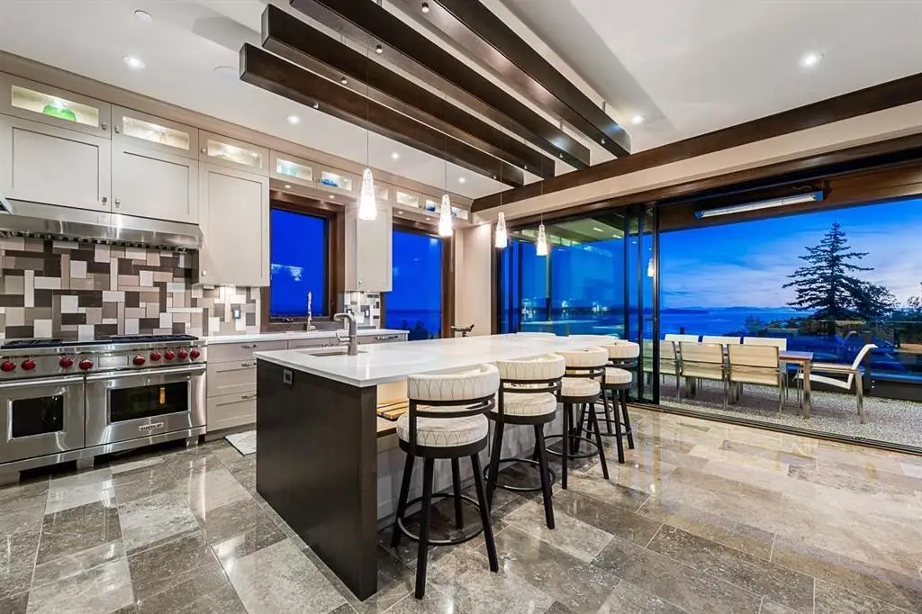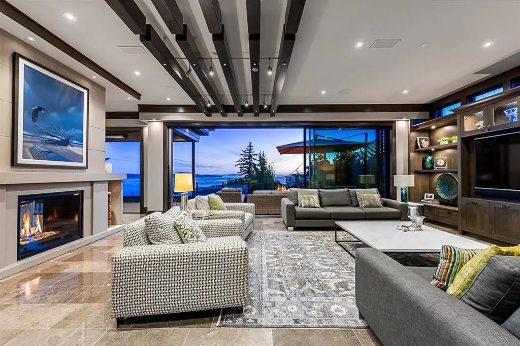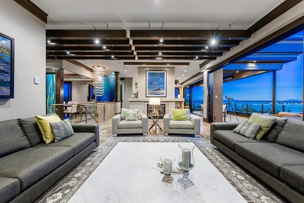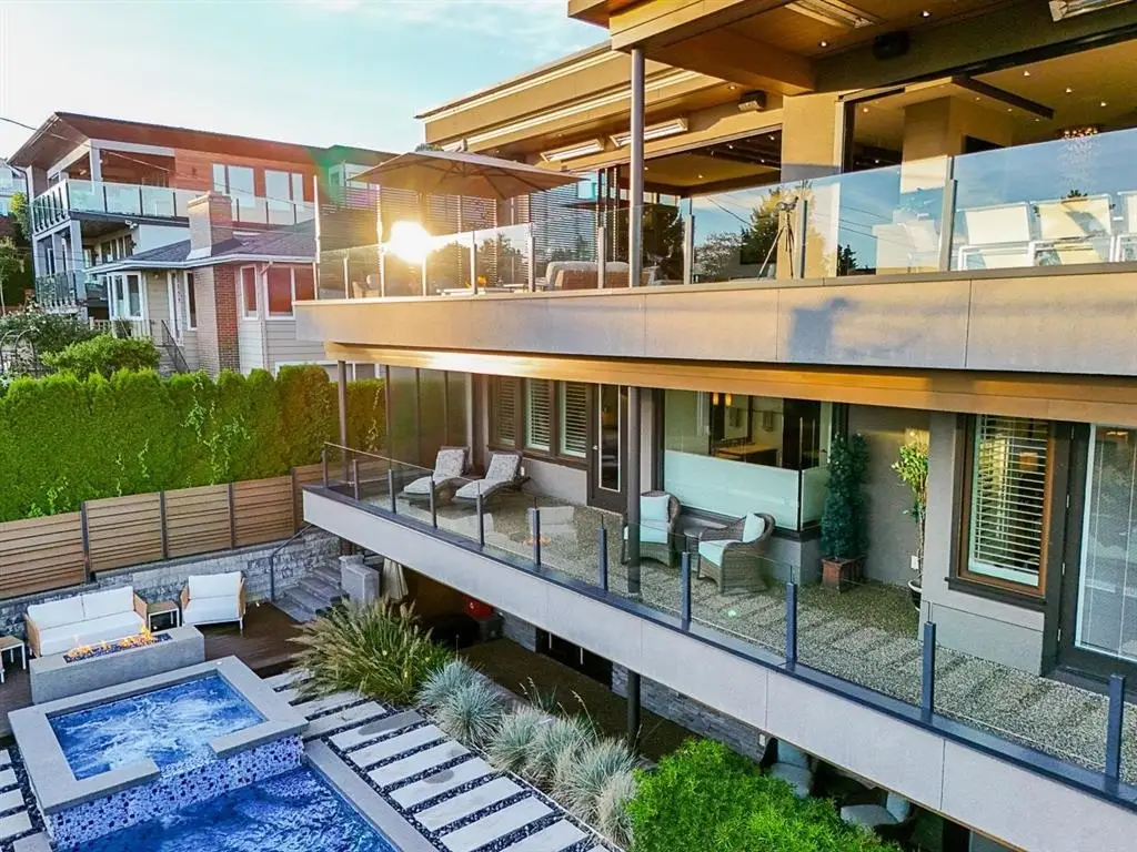 Spectacular Ocean & Mount Baker Views combined with superior quality and timeless modern design. Built by Ronco Construction, this opulent smart home offers breathtaking views from principal living spaces seamlessly integrating indoor & outdoor living. Open-concept main floor includes a grand living room with a double sided limestone fireplace leading to a gourmet kitchen with Wolf/Subzero appliances, formal living & dining rooms, and a heated oceanside deck. Elevator for easy access to the lower levels, including the lavish primary suite rivalling the Ritz in its glamour. Walk out basement complete with a media room, gym with sauna & steam, bar, and a guest room. Meticulously landscaped and gated for privacy, the backyard features an in-ground pool and hot tub. Timeless luxury redefined!