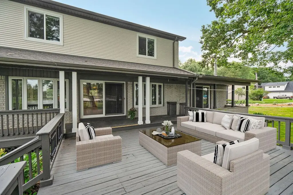 Lakefront Gem on Gallagher Lake, part of the Portage Chain of Lakes. Premier corner lot with 337 feet of newer seawall, offering panoramic, unobstructed views of Gallagher Lake with tranquil sights & sounds of nature in every season. Inside, the home offers an open-concept kitchen with a spacious island & sweeping lake views from nearly every window. Living room with fireplace & family room, perfect for entertaining. 4 bedrooms & 2 full baths including a primary suite with en-suite bath. The expansive yard offers plenty of space for outdoor funC/B?B=and ample room for all your boats & water toys. Enjoy lake life, including the terrific annual Gallagher fireworks show from your own front yard. Soak in the views from sunrise to sunset they are truly unforgettable!