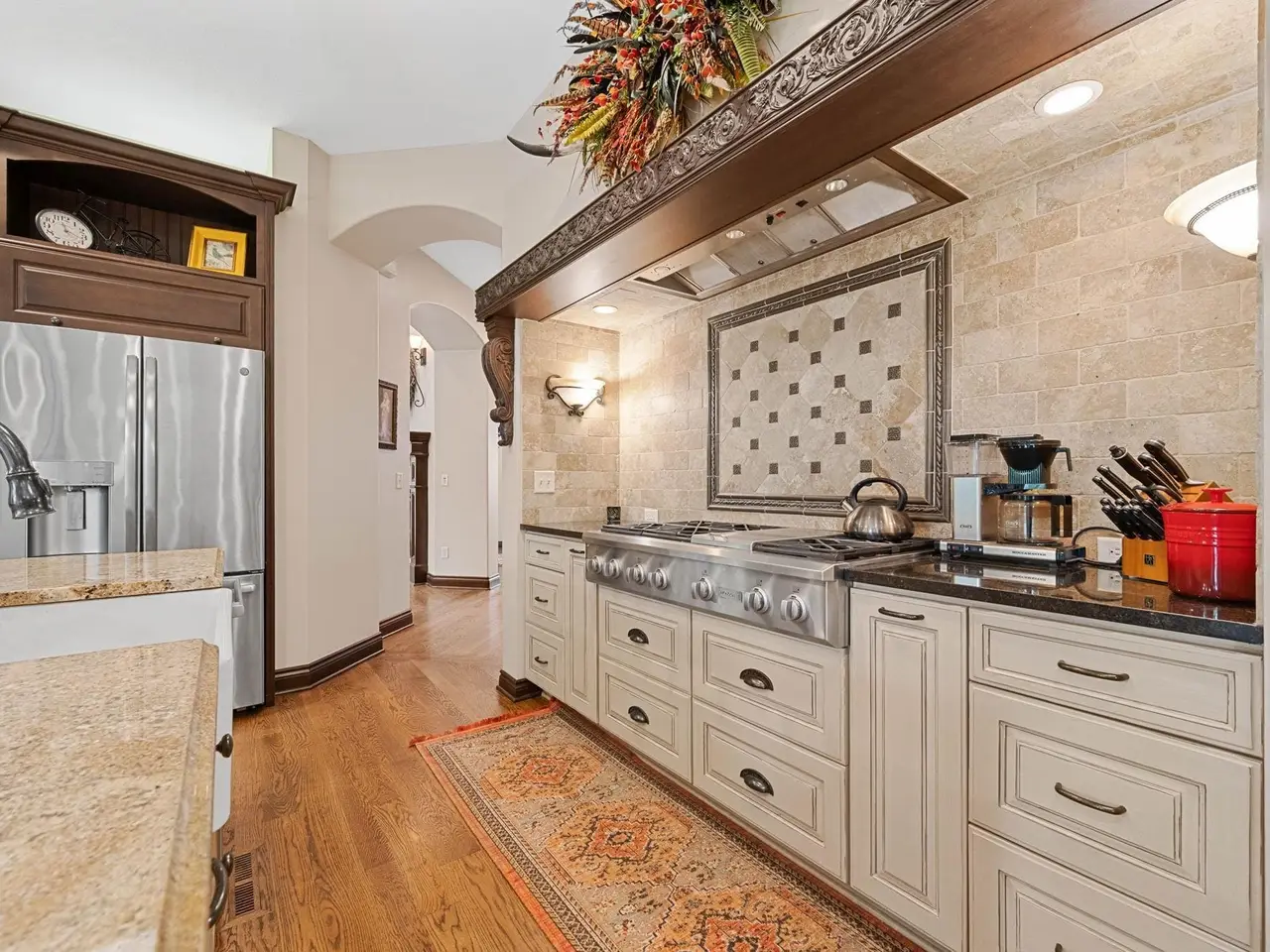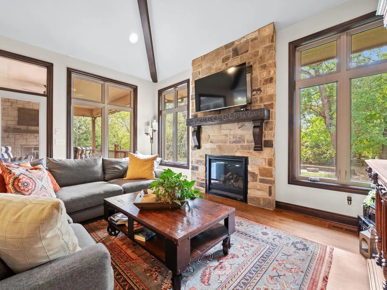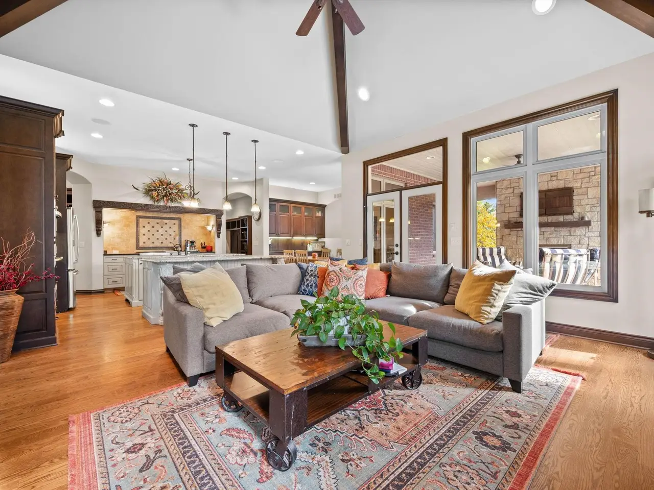 Welcome Home to 8219 W. Meadow Park, located in the sought-after gated Fossil Rim Estates neighborhood of west Wichita. This full brick and stone residence combines craftsmanship, comfort, and natural beauty on nearly one acre backing to mature trees. Designed for everyday living and memorable entertaining, the home offers 6 bedrooms, 4.5 baths, and approximately 6,082 sq ft of finely finished space. Step inside to find architectural detail at every turnarched entries, custom millwork, crown moulding, and gleaming hardwood floors. The open main level showcases a formal living and dining area with built-ins, gas fireplace, and tall windows that frame peaceful tree views. The adjoining hearth room features a stone fireplace with beam accents, creating a warm gathering space connected to the gourmet kitchen. Well-appointed for cooks and hosts alike, the kitchen includes granite countertops, double ovens, gas cooktop, stainless appliances, two large islands, and a walk-in pantry with prep sink. A main-floor office provides an ideal workspace, while the laundry room offers built-in cabinetry, sink, and drop-zone bench. The spacious primary suite is a private retreat with a coved, lighted ceiling and a wall of windows overlooking the wooded yard. The spa-style bath offers dual vanities, jetted tub, custom tile shower, and an impressive walk-in closet with built-ins. Two additional bedrooms and a full bath complete the main level. The finished walk-out basement extends the living space with a large family room centered around a stone fireplace, full wet bar with granite counters and slate flooring, billiards area, exercise room, two bedrooms, concrete safe room, and abundant storage. Natural light and patio access make the lower level ideal for entertaining or relaxation. Outdoor living shines here with a covered composite deck featuring a stone fireplace, perfect for year-round enjoyment, and a lower brick patio surrounded by landscaped beds. The expansive yard includes fencing, fire pit, and a private well and sprinkler system. The side-load three-car garage offers epoxy flooring and extra workspace. A concrete tile roof and full masonry exterior provide exceptional durability and timeless curb appeal. Located in Maize School District 266, within minutes of Sedgwick County Park, NewMarket Square shopping and dining, Ridge Road corridor amenities, and the Northwest YMCA, this property delivers the perfect balance of privacy and convenience. Experience refined living in Fossil Rim Estateswhere design, setting, and quality craftsmanship come together in one remarkable west-side Wichita address.