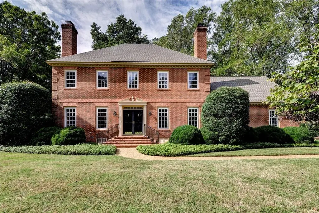 Beautiful all brick Colonial built by custom builder Ron Curtis & located on premier street with part golf views of the 8th tee on the Plantation Course. This home comes with 4 bedrooms, 3 1/2 bathrooms and a spacious bonus room with rear staircase access. The gracious foyer opens to the two-story staircase, living room with wood burning fireplace and to the "Jefferson Library" designed after CW with exquisite dentil molding, built-in bookshelves and has a gas fireplace as the center piece. The kitchen has a large eat-in area and opens to the lovely sun room with views over the backyard & golf course. First floor primary suite with large bathroom and 2 walk-in closets. Upstairs is another primary suite plus 2 additioanl bedrooms, bathroom and bonus room. Beautiful hardwood floors, 9ft. ceilings on the first floor & complete with a 2 car attached garage. This home is loaded with charm & detail and has so much potential.