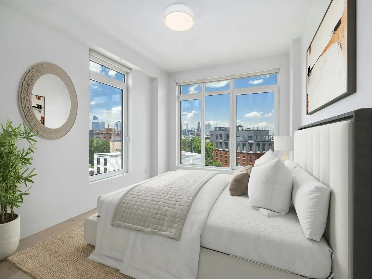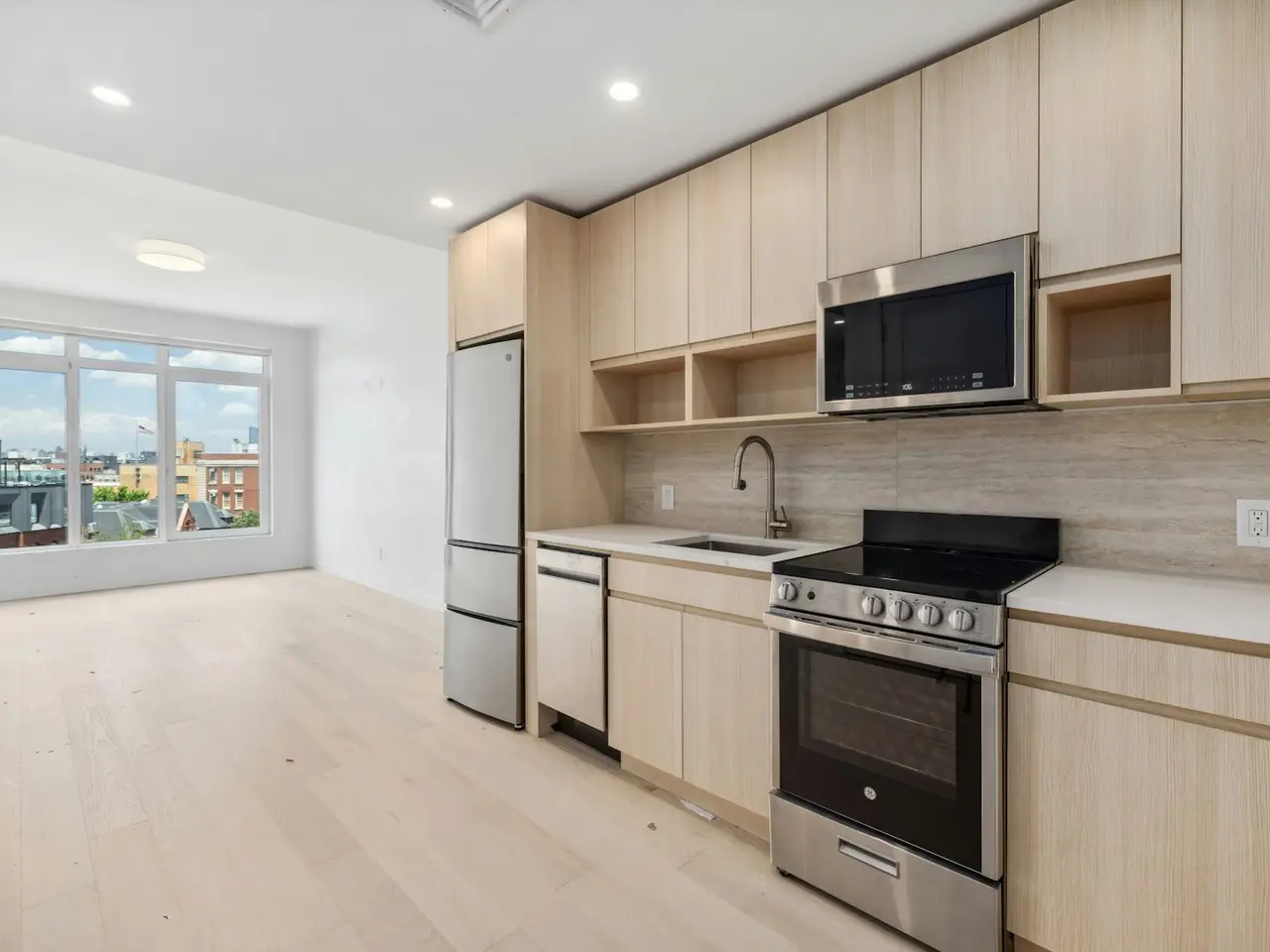 Welcome to Apartment #7M at 8 Marcy Avenue! Please inquire via Street Easy to view. This 1 bedroom/1 bathroom apartment boasts hardwood flooring throughout, large windows with bright exposures, and in-unit laundry. Entering the apartment, you will first come across the beautifully renovated kitchen, complete with marble countertop, and a full suite of full sized appliances. The living room is airy and bright, containing a floor-to-ceiling exposure with stunning views into Manhattan. The bedroom contains a large closet and another west-facing window. Rounding out the apartment is the full bathroom, which is completely modern and features a soaking tub. The in-unit washer/dryer can be found in a closet off of the bedroom. 8 Marcy Avenue is home to many modern amenities including a lush rooftop, fitness center, common lounge, resident workspaces, laundry rooms, package room, bike storage and a garage. Transportation is nearby with the Metropolitan Av G-train and the Lorimer Av L-train. Please note that the photos are of a similar unit in the building. First months rent and security deposit are due with lease signing. $25/month for pets $20/person for credit check when applying