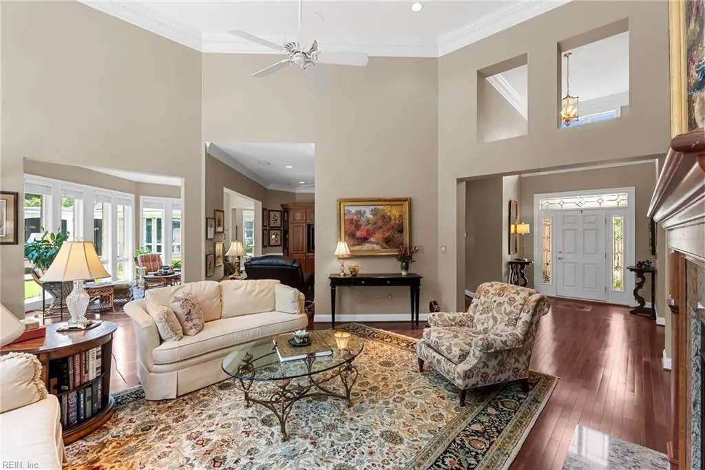 Welcome to Rivers Edge, one of Kingsmill's most coveted low-maintenance communities offering unforgettable pond views and exceptional living. This beautifully designed, mostly one-level home features 3 spacious bedrooms, 3.5 baths, plus a dedicated office with custom built-ins. Gorgeous hardwood floors, stunning trim details, and an elegant two-story family room with built-ins and a cozy fireplace create a warm and inviting atmosphere. Expansive water views grace the main living areas and most windows, providing a truly serene backdrop. Impeccably maintained with superb attention to detail this is the easy, elevated lifestyle you've been waiting for!