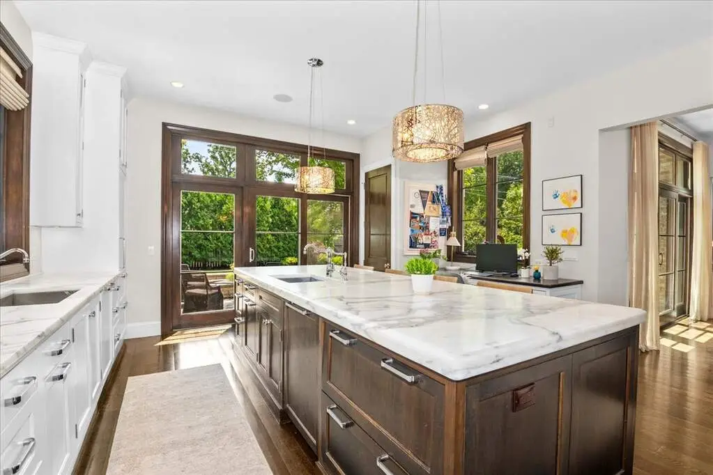 Luxury awaits at this stunning custom built 90' wide corner lot brick home on a cobblestone street in East Wilmette. Built by a city-dwelling couple seeking a similar lifestyle where they could walk with their four kids to school, train, beach, coffee, grocery, and fine dining, this location surpassed their expectations. No attention to detail was spared in placement of the home on this prime lot including the attached 2 car garage with heated brick driveway, multiple outdoor patios, sports court. Iron clad double glass entry doors and large scale windows with 10' ceilings flood the first floor with light. At entry is a formal dining room, library with limestone fireplace, wet bar and extensive millwork. The real heart of the home is the southern facing chef's kitchen, anchored by a 10'long Calcutta gold marble island; Wolf 6-burner double oven; separate stand-alone Subzero refrigerator and freezer; two sinks; two Bosch dishwashers; potfiller; walk-in pantry; desk and sliding door access to the outdoor living space. Adjoining to the kitchen is an everyday dining area and stunning family room with grand limestone fireplace, three sides of windows, built ins, and two seating areas. Dual heating systems, with radiant heat in both basement and first floor make for ultimate comfort. This home is timeless elegance and contemporary luxury throughout. On the 2nd floor, are 5 bedrooms, 4 en-suite marble bathrooms, three walk in closets, double sinks and full laundry room. The finished third floor is a 6th bedroom, living like a small apartment, complete with full bathroom, walk in closet and window seat. The lower level level features 9.5 foot ceilings, wood burning fireplace, gas forced radiant heated floors, a 7th bedroom with full bath, exercise room, additional powder room, and huge rec room area. Adjoining the attached garage is a finished mudroom, with 5 custom cubbies, a coat closet, sink, upper and lower cabinets. 601 Linden is a truly special, a must-see.