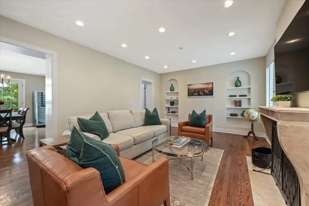 This exceptional Wilmette home is located in the highly desirable "Little Indian Hill Estates" neighborhood, just a short walk from Harper elementary school. A stunning example of Keck & Keck architecture, the home was originally built in the 1930s and features a remarkable two-story addition that doubles its size while preserving its timeless character. Upon entry, you are welcomed into a spacious living room with custom built-in bookshelves, plantation shutters, and a rare Louis XVIII stone mantel fireplace that adds elegance and warmth. The adjacent dining room is equally inviting, with French doors that open to a beautiful bluestone patio, perfect for indoor-outdoor entertaining. The main level also includes a private office with a pitched ceiling, a large flex room that can serve as a playroom, den, or guest bedroom, and a thoughtfully designed mudroom with ample storage. The newer kitchen flows seamlessly into a fabulous family room featuring floor-to-ceiling windows and coffered ceiling, all overlooking the professionally landscaped backyard. Upstairs, the second floor offers four spacious bedrooms and three full bathrooms. The primary suite is a true retreat with vaulted ceilings, two walk-in closets, and a beautiful timeless bathroom. An additional ensuite bedroom and a Jack-and-Jill configuration provide comfort and flexibility for family or guests. Hardwood floors run throughout the home, adding warmth and continuity. The finished basement includes a recreation room, a dug-out space, and extensive storage options. Outside, the backyard is a private oasis with a newer bluestone patio and a gorgeous wood-burning fireplace that creates a perfect setting for gatherings or quiet evenings. The attached tandem two-car garage offers additional storage and includes an EV charging outlet for added convenience. This is an incredibly special home that combines architectural pedigree, modern updates, and an unbeatable location-you won't want to miss it.