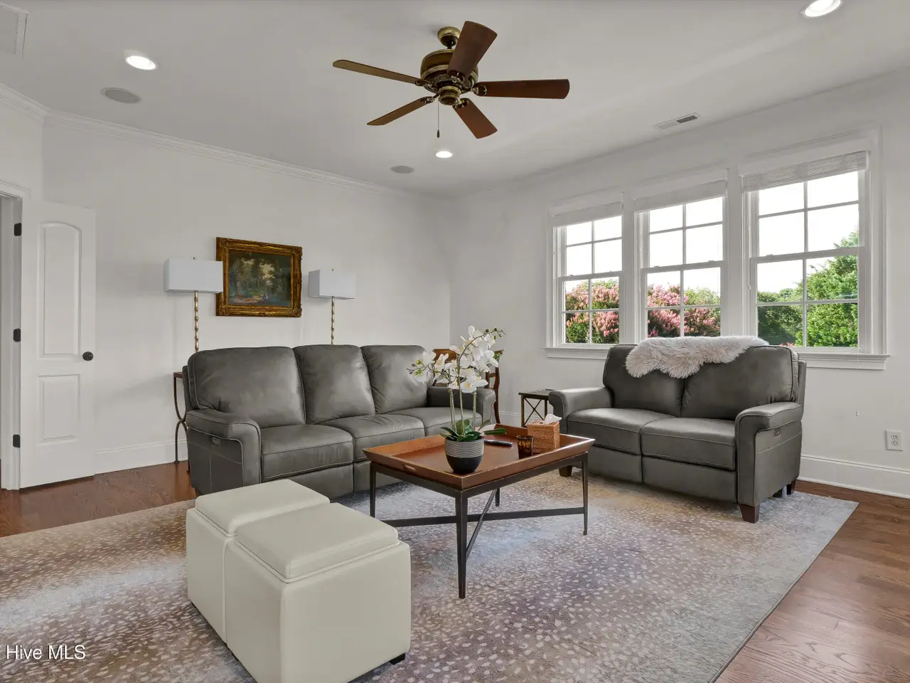 • Hardwood floors, custom built-ins, detailed crown moldings throughout