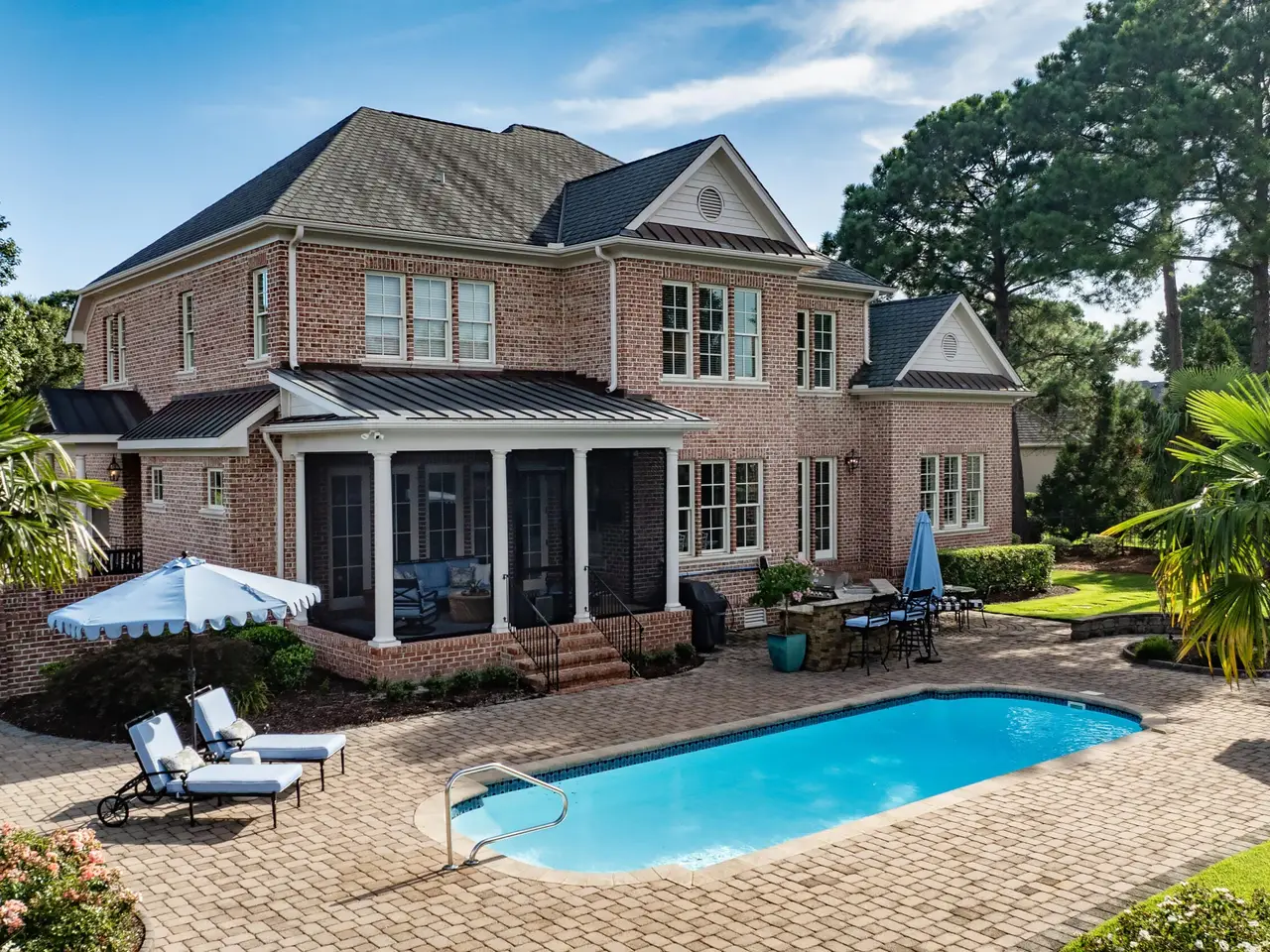 This custom built all brick Landfall home on a quiet cul-de-sac has just undergone a magnificent $500,000 complete remodel, including entirely new kitchen, new bathrooms, new upper and lower laundry rooms, and landscaping. Thoughtful design features are found throughout this home and are immediately appreciated at every turn. A covered front porch and graceful arched mahogany French doors create a memorable entrance to this comfortable home with a paneled study and formal dining room flanking a generous foyer with wrought iron railings. Hardwood floors, custom built-ins and detailed crown moldings are found throughout the first floor. The kitchen has been completely updated with all new cabinetry, Vikings stainless appliances, including a six burner gas cooktop, side-by-side refrigerator freezer, a huge quartz center Island for elegant entertaining all overlooking the family room with fireplace, a sunny breakfast nook, a screened porch and private backyard with pool and fire pit. The first floor master features hardwood flooring and a brand new bath with soaking tub and a frameless glass shower, and a large walk-in closet with custom built-ins. The second floor features front and rear stairs that provide access to four bedrooms, three bathrooms and an upstairs den. Additionally the second floor includes an upstairs laundry room and large floored walk-in attic. This home is literally move-in ready for the lucky owner who appreciates attention to detail. Enjoy this central Landfall location with easy access to the wooded conservation area walking trails and the mile long paved trail around scenic Landfall Lake.When only the best will do!